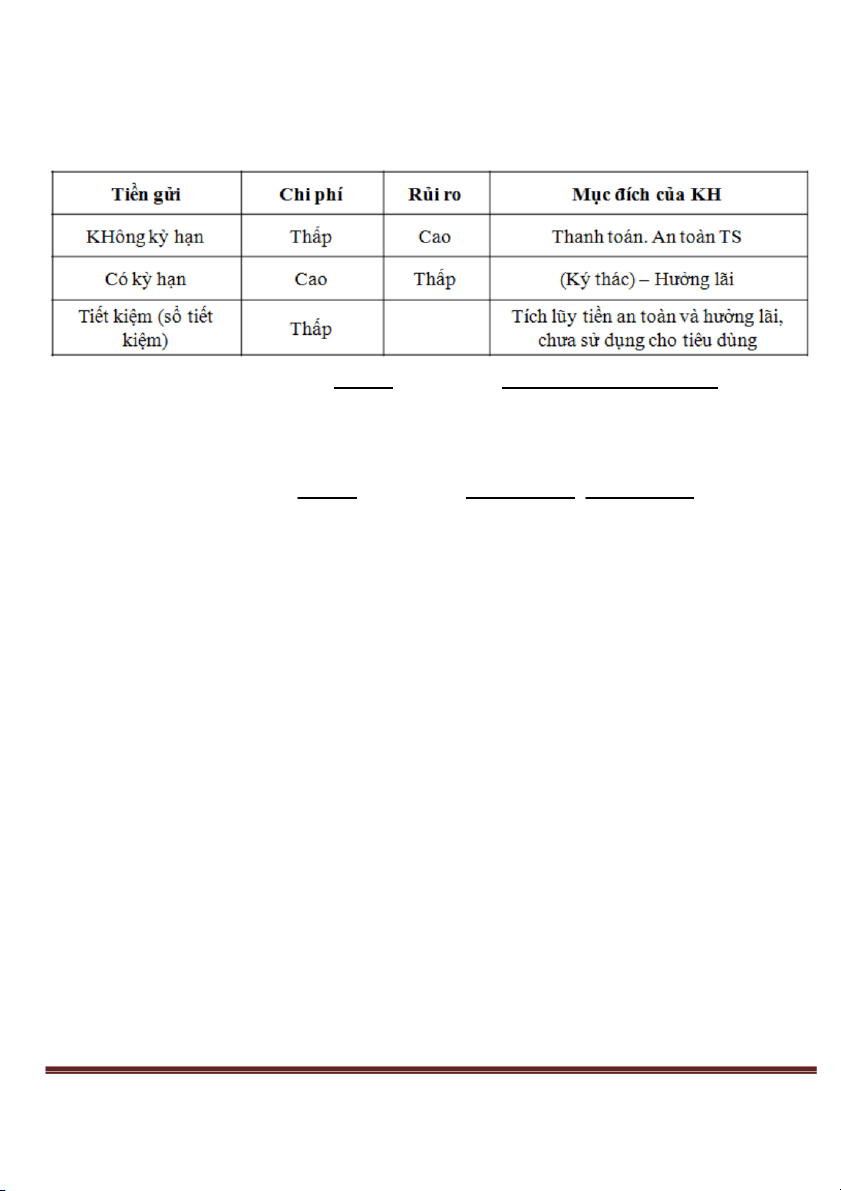 + Tiền gửi không kỳ hạn: Muốn thu hút thì NH phải tăng Khả năng thanh toán a. Tiền gửi thanh toán