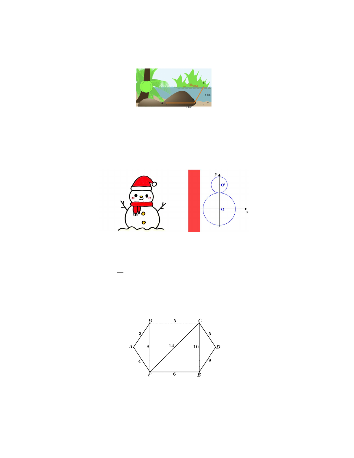 Câu 6. Một người đưa thư xuất phát từ bưu điện (vị trí C), các điểm cấn phát thư nằm dọc các con đường cần