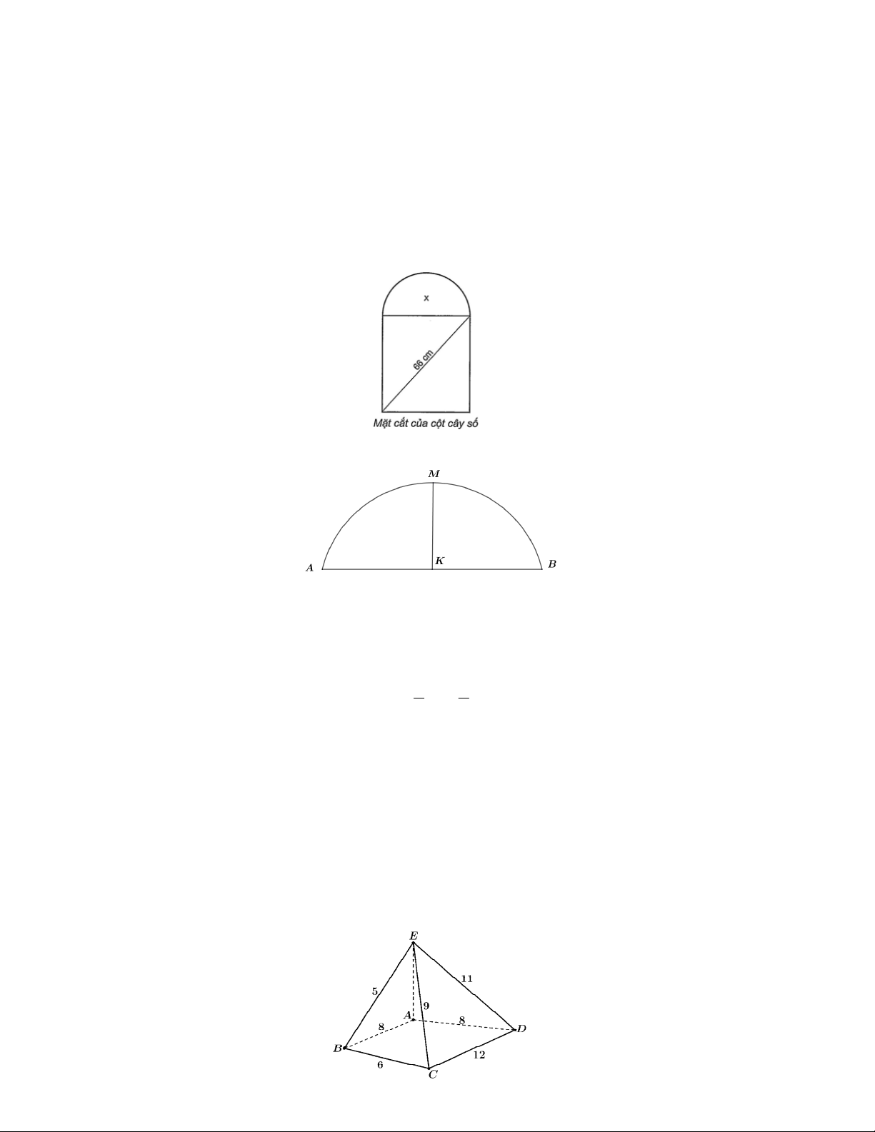 Câu 3. Mặt cắt đứng của cột cây số trên quốc lộ có dạng nửa hình tròn ở phía trên và phía dưới có dạng hình
