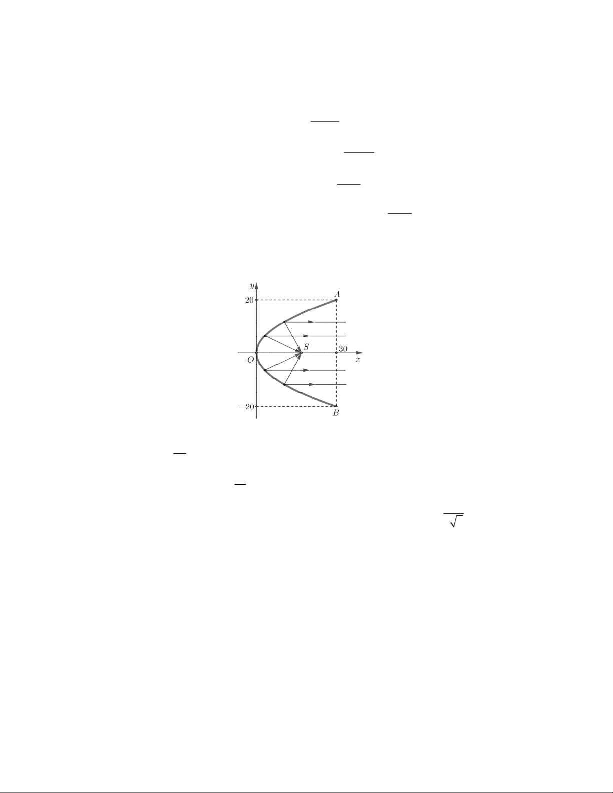 hình vẽ, giả sử xem dây tóc bóng đèn là một điểm và được đặt ở vị trí tiêu điểm của parabol. Tính khoảng cách