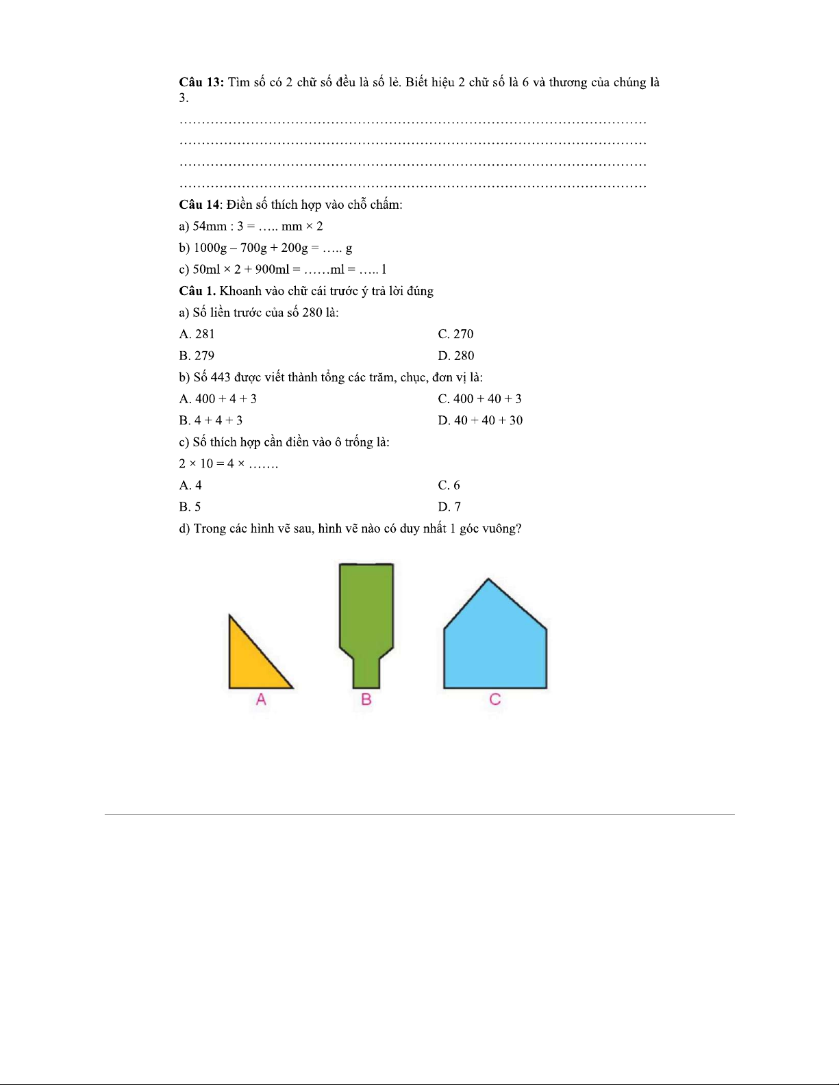 Ôn Tập Toán Lớp 3 - Bài Tập và Giải Thích Chi Tiết