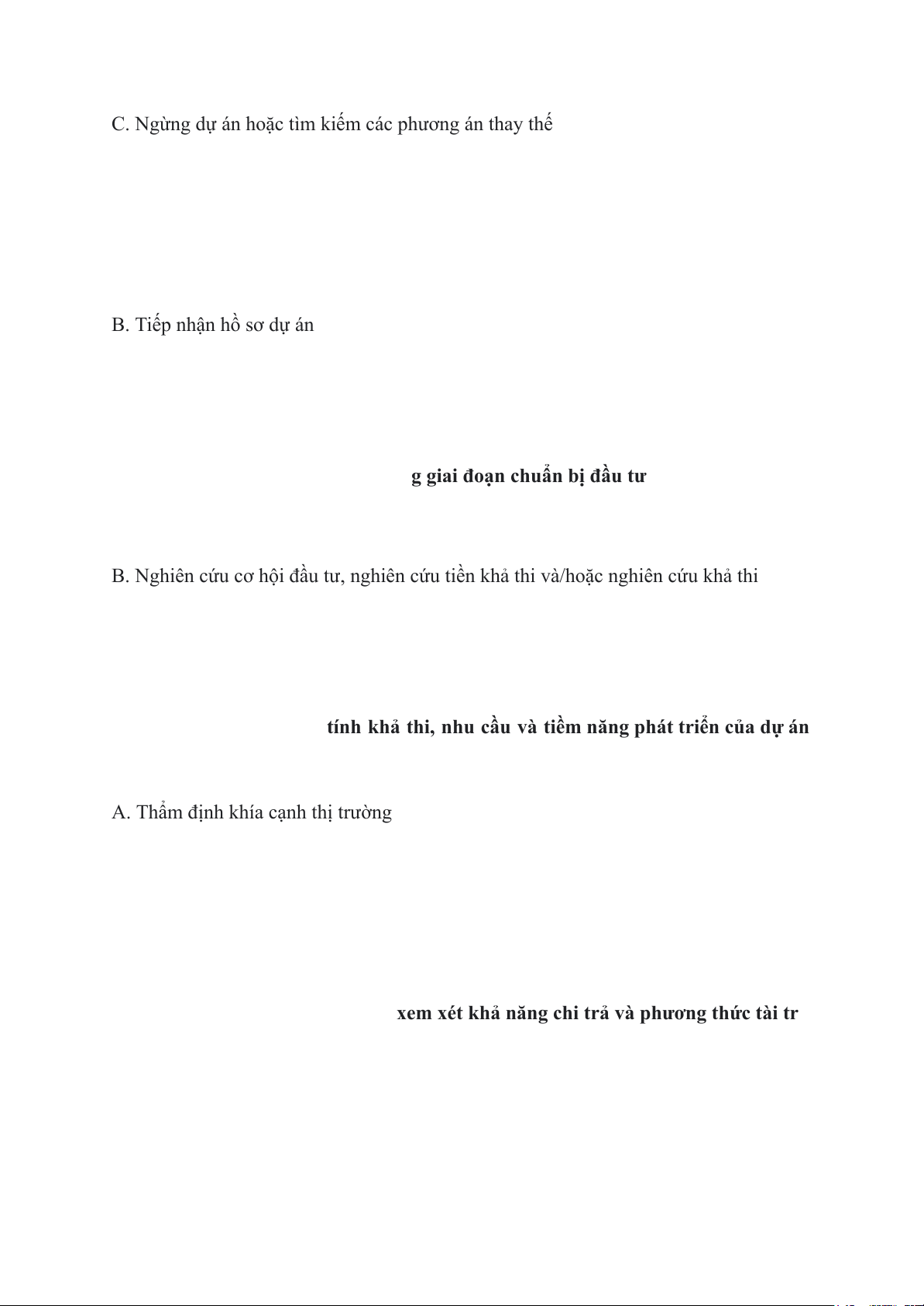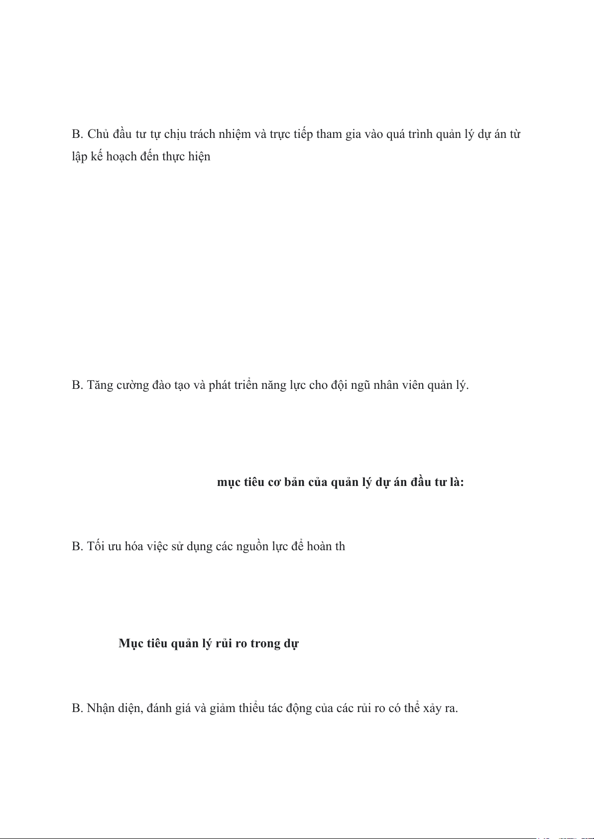 Câu 18: Một trong những mục tiêu cơ bản của quản lý dự án đầu tư là: