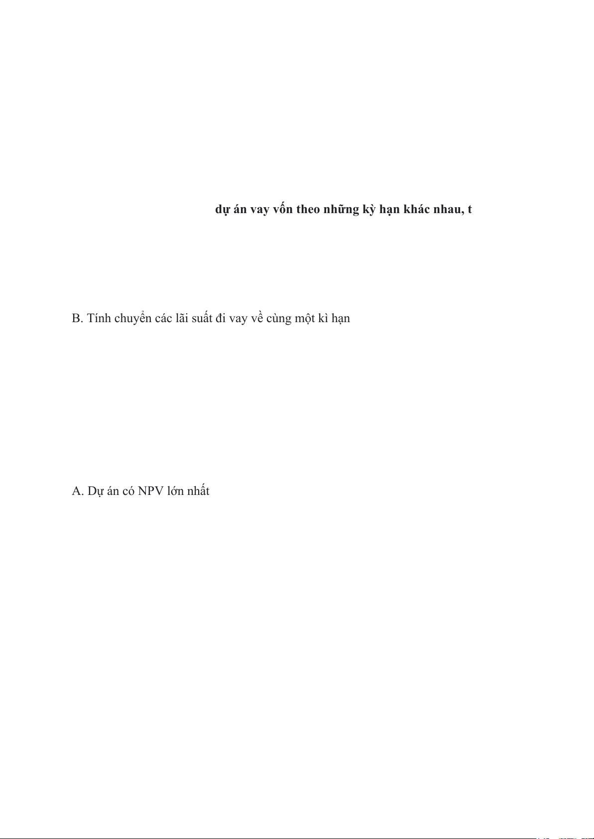 Câu 7: Trong trường hợp dự án vay vốn theo những kỳ hạn khác nhau, tỷ suất r