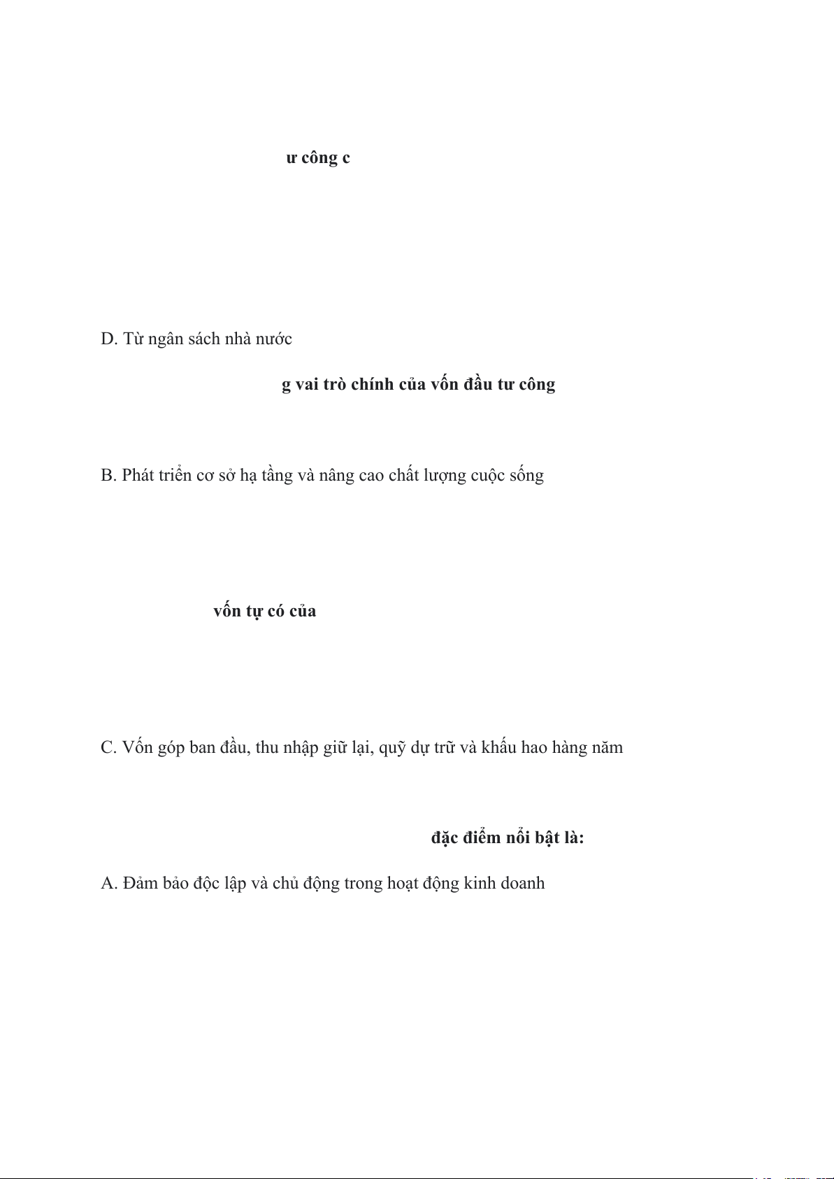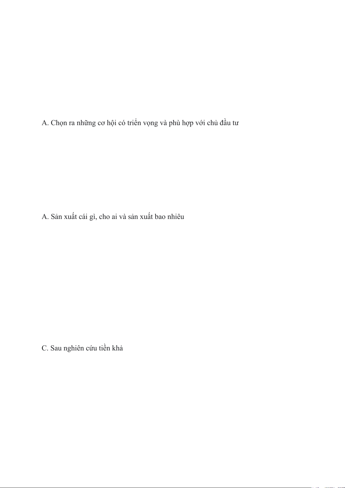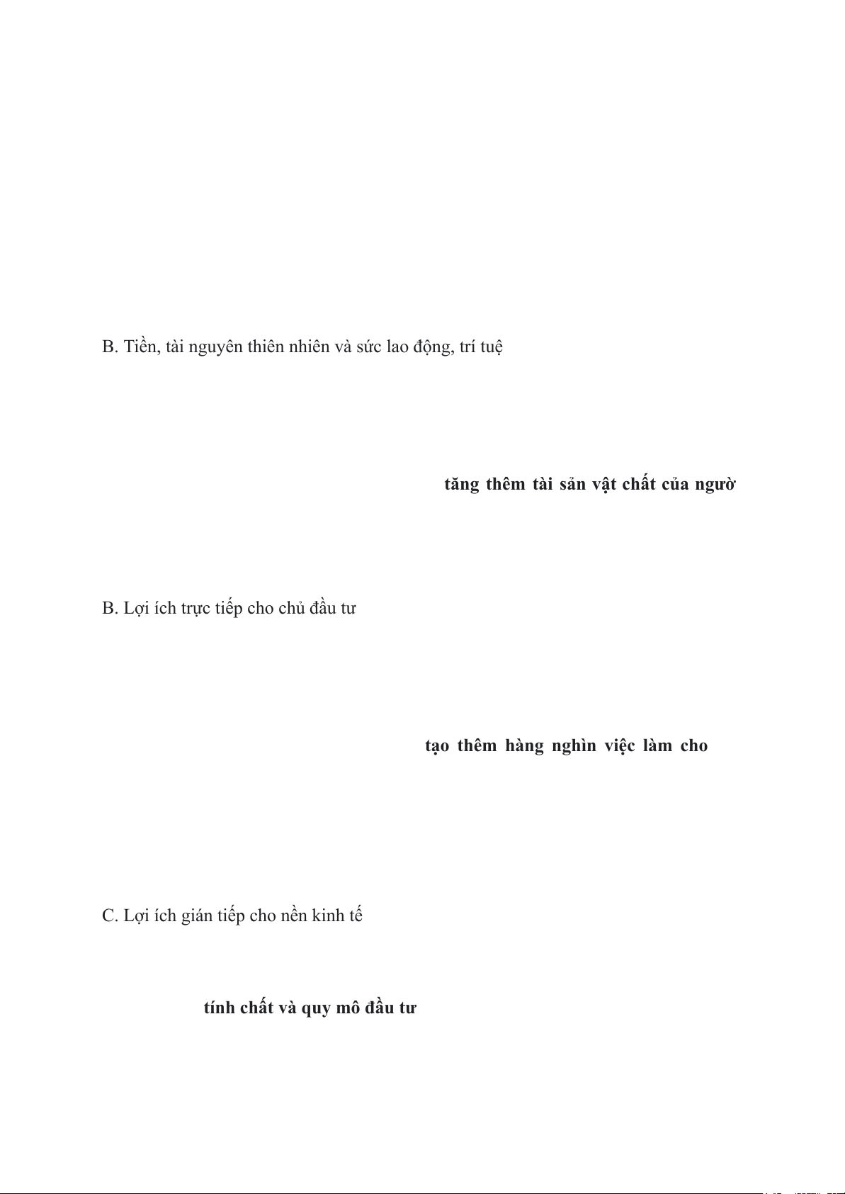 Câu 5: Đặc điểm của đầu tư sản xuất là: A. Vốn đầu tư lớn