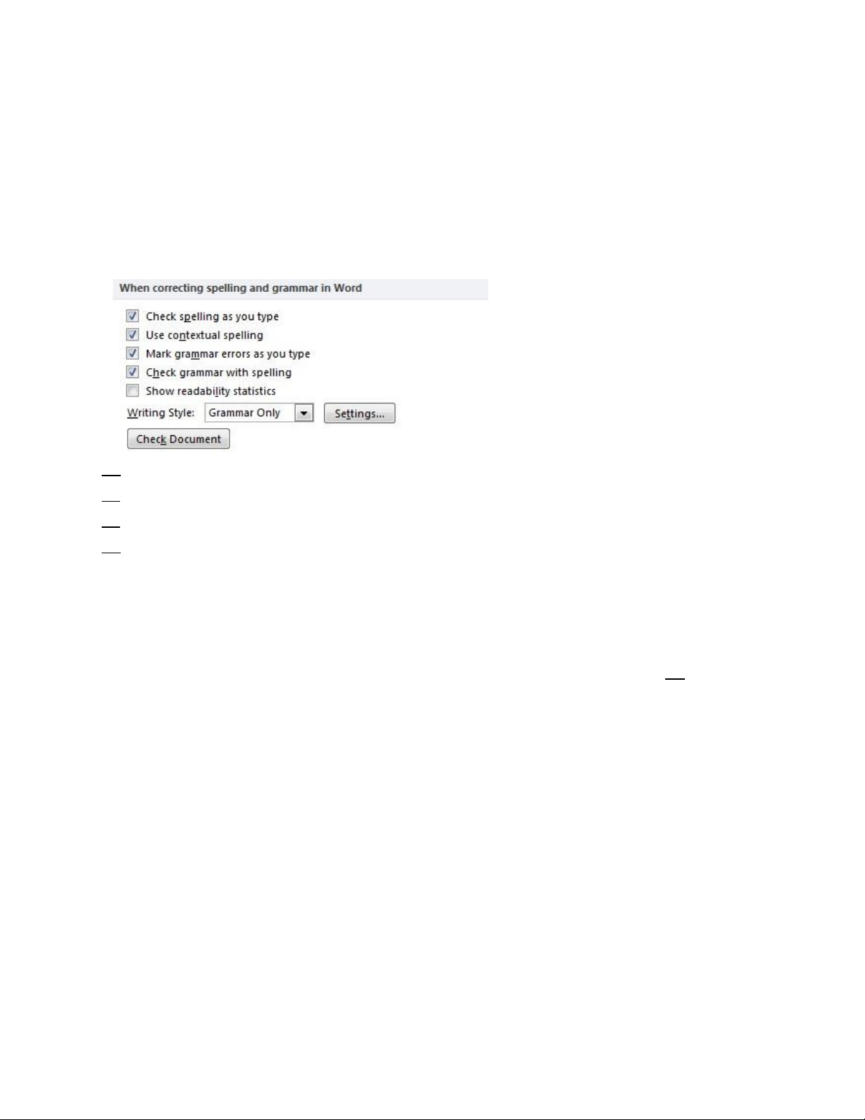 Câu 3.7. Khi gõ văn bản trên Ms Word 2010, các đường răng cưa màu đỏ xuất hiện