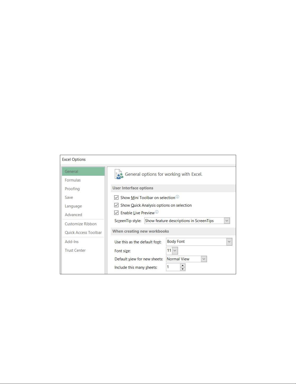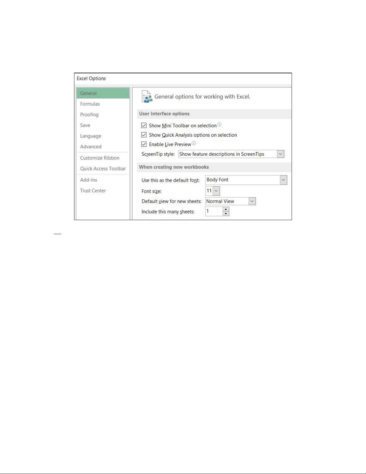 năng ấn định kiểu chữ và cỡ chữ mặc định cho toàn bộ Workbook: A. Ge neral B. Formulas C. Proofing D. Advanced