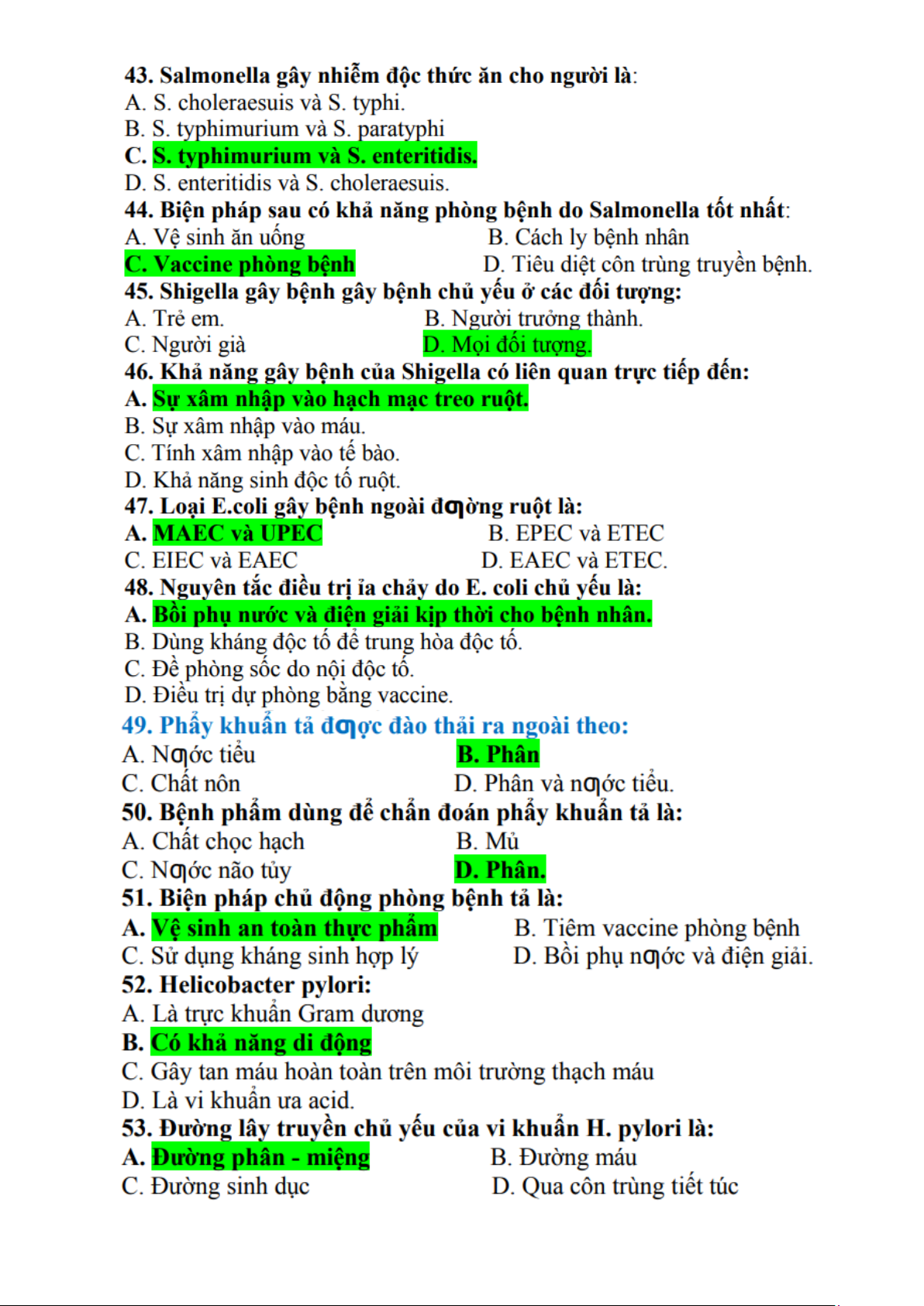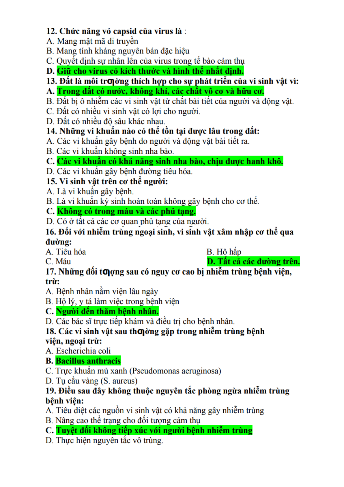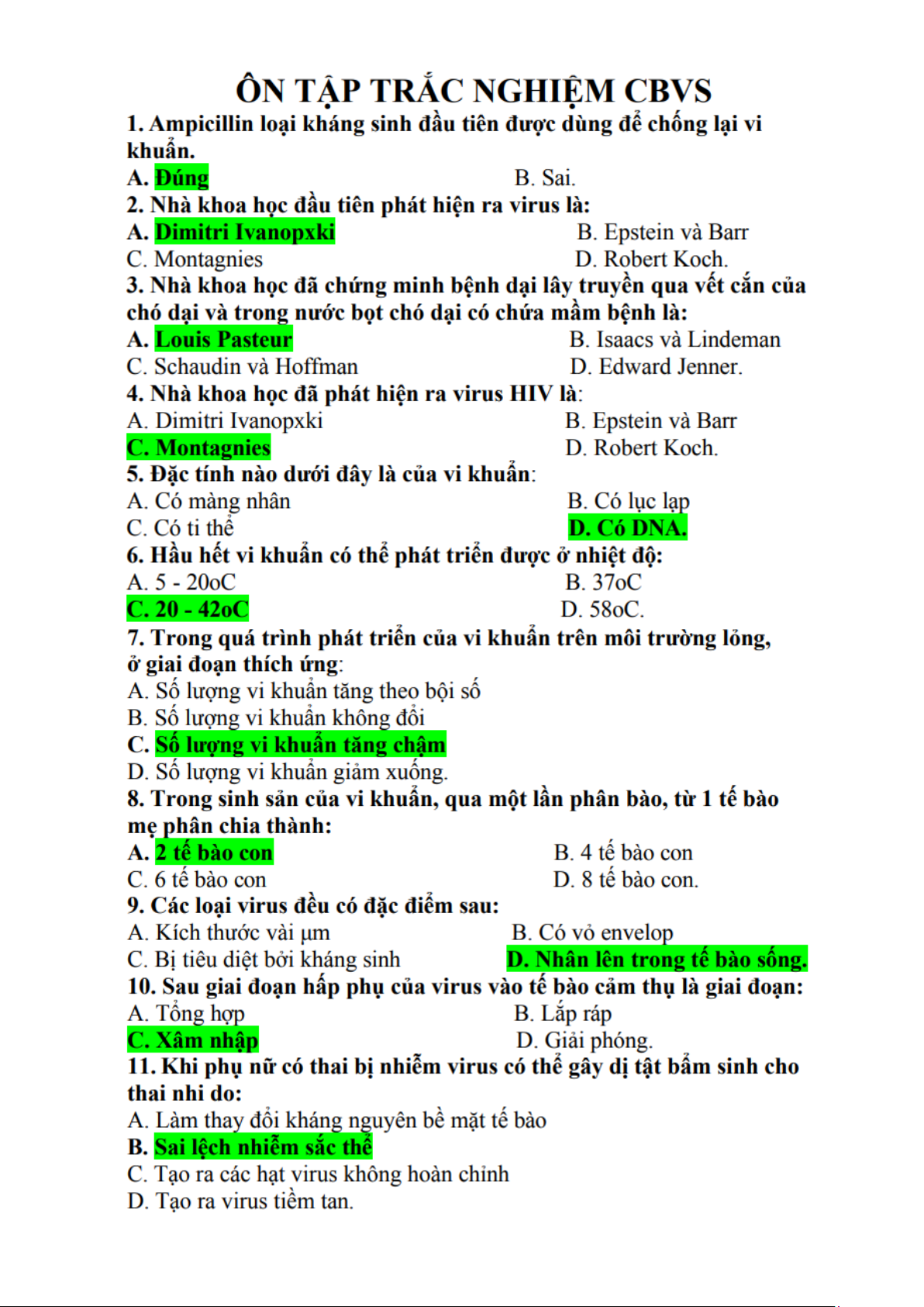 Ôn tập trắc nghiệm môn Vi sinh căn bản | Trường Đại học Duy Tân