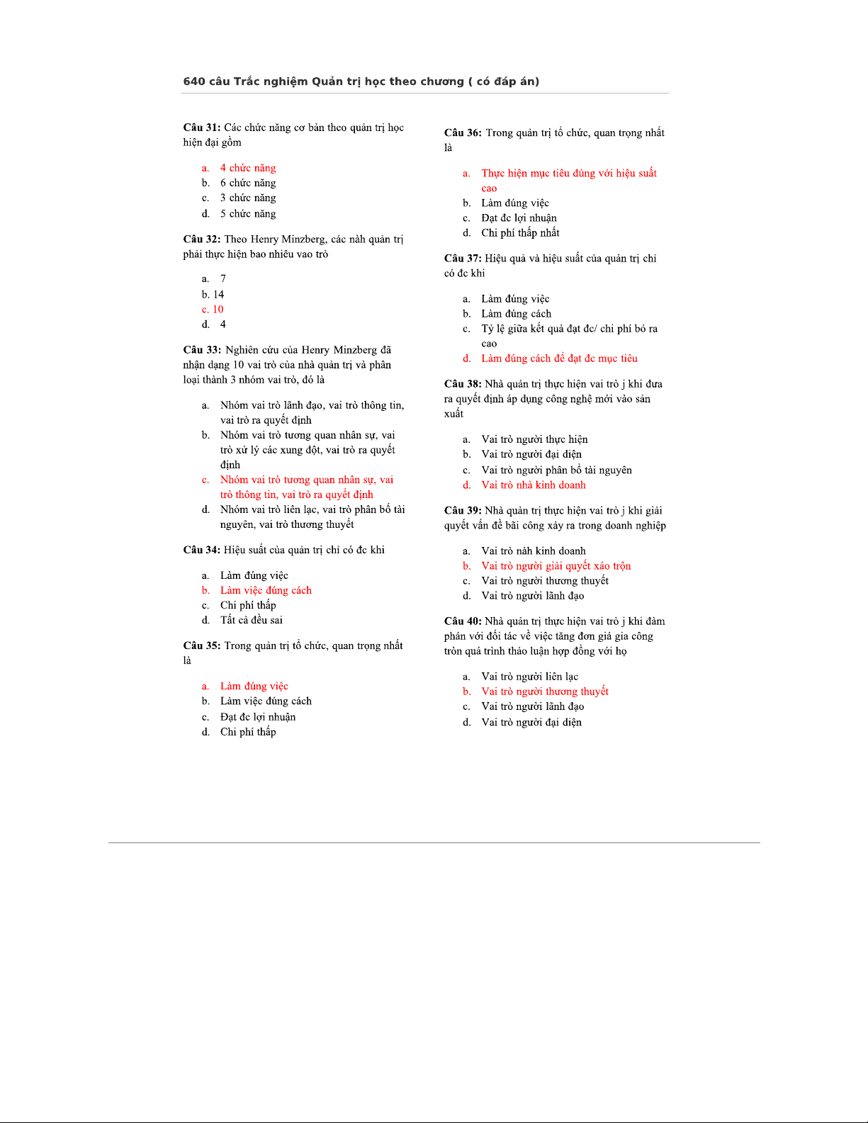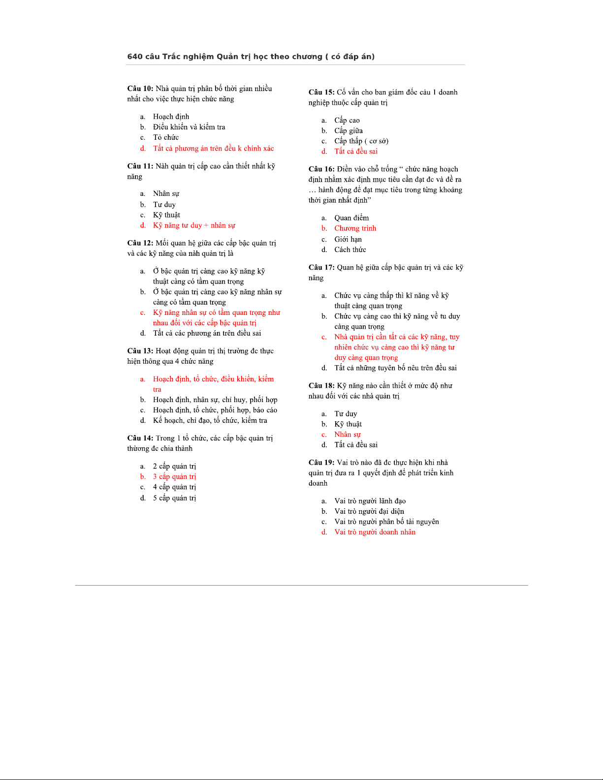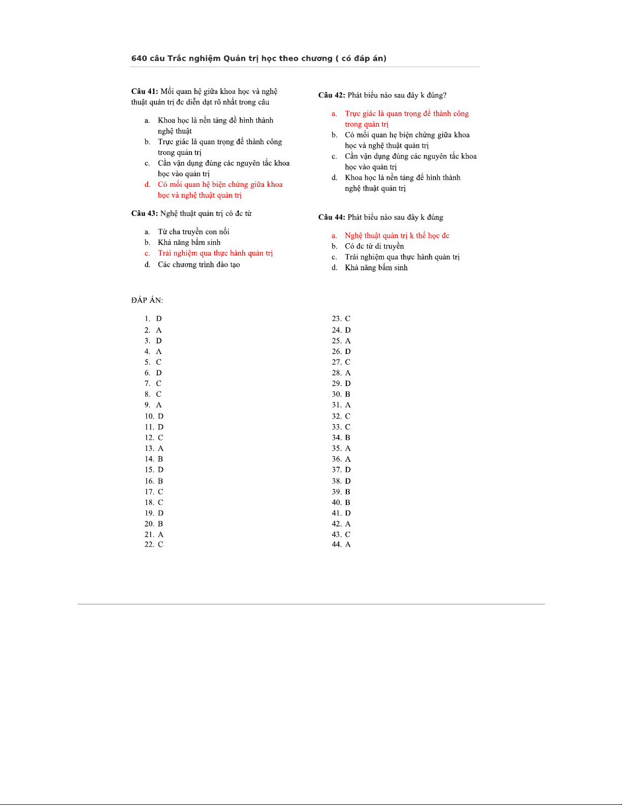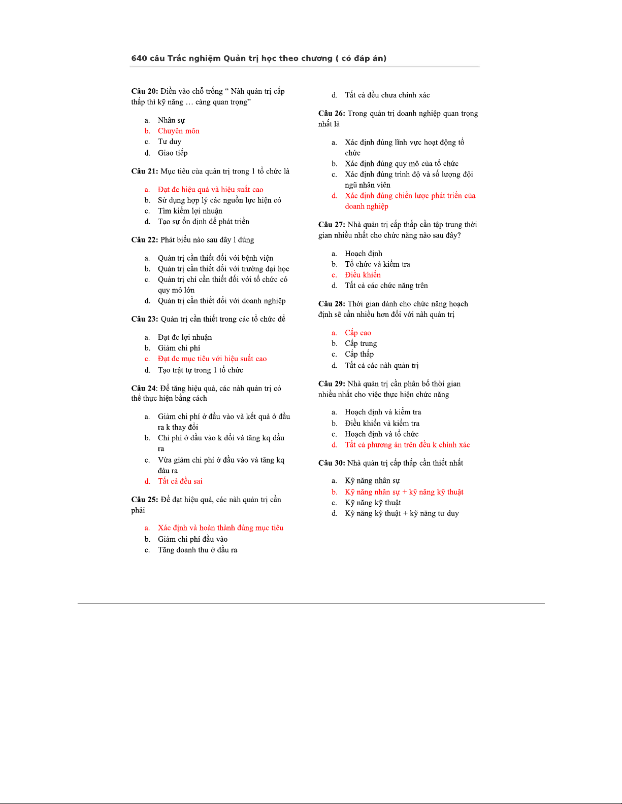 Ôn Tập Trắc Nghiệm Quản Trị Học (640 Câu, Có Đáp Án)