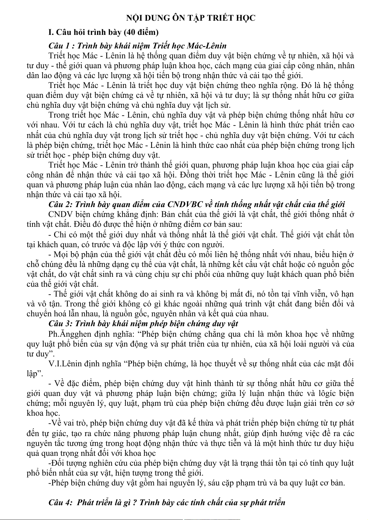NỘI DUNG ÔN TẬP TRIẾT HỌC