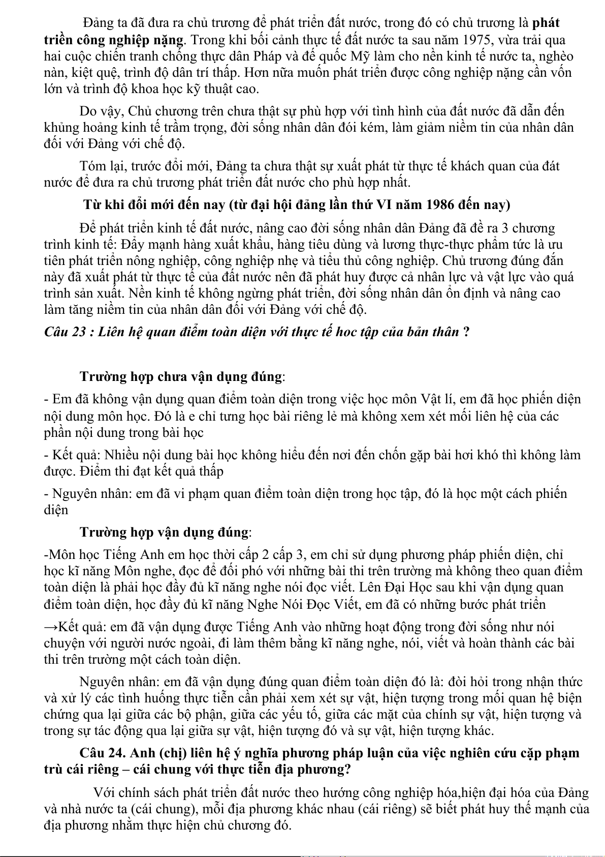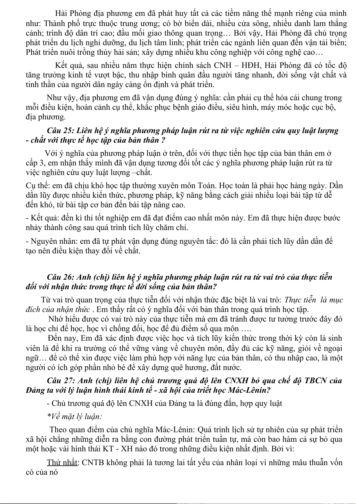 Câu 27: Anh (chị) liên hệ chủ trương quá độ lên CNXH bỏ qua chế độ TBCN của