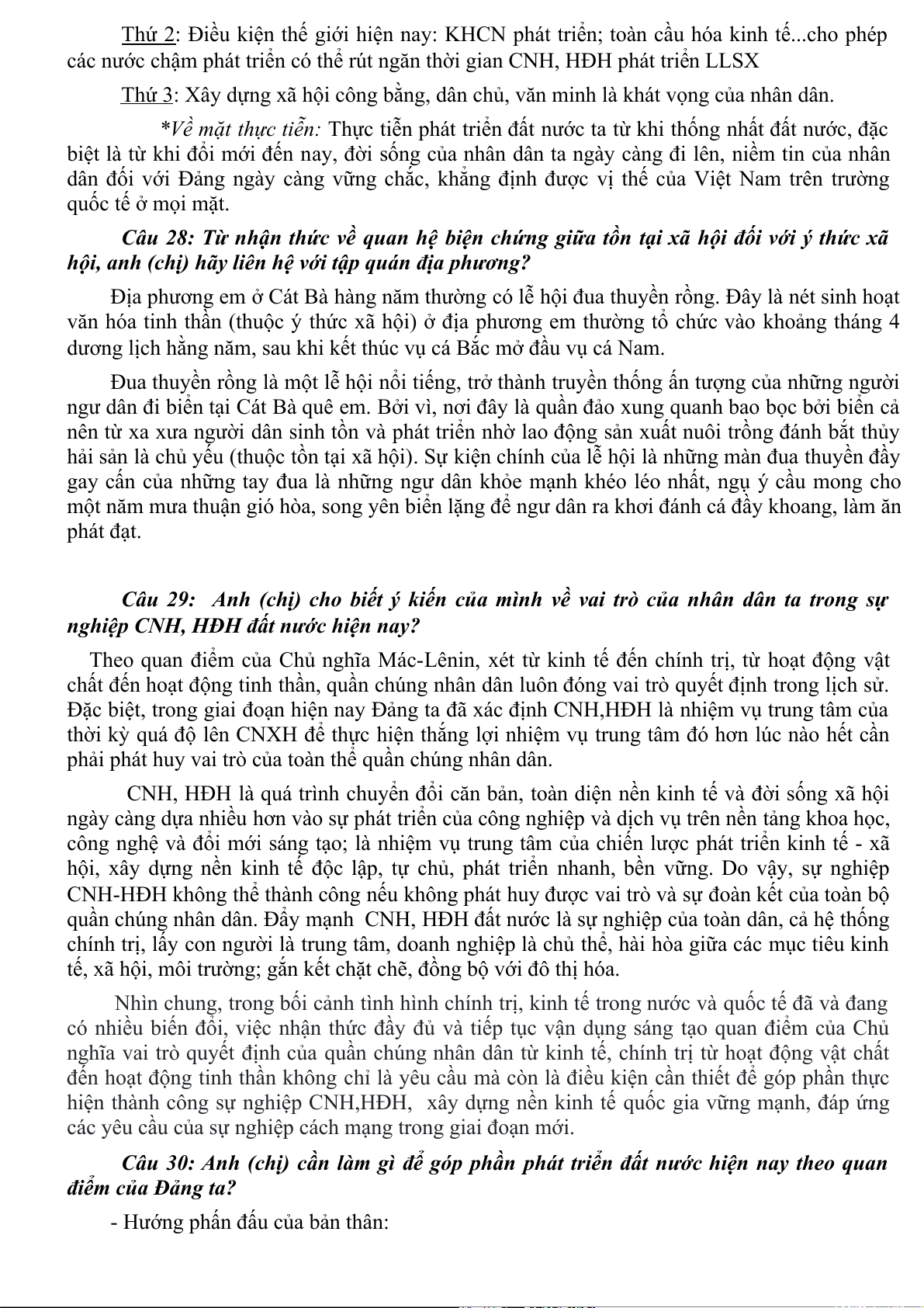 Câu 30: Anh (chị) cần làm gì để góp phần phát triển đất nước hiện nay theo quan