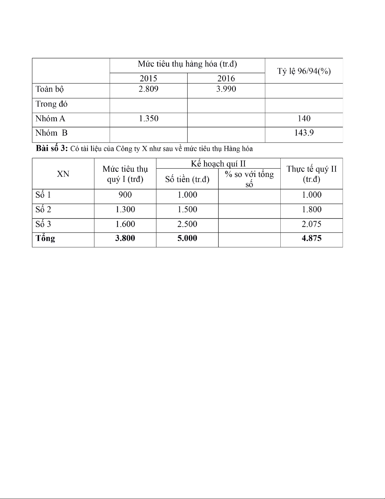 Bài số 2: Có tình hình tiêu thụ hàng hóa của công ty X trong thời kỳ 2015 - 2016 như sau: Yêu cầu: