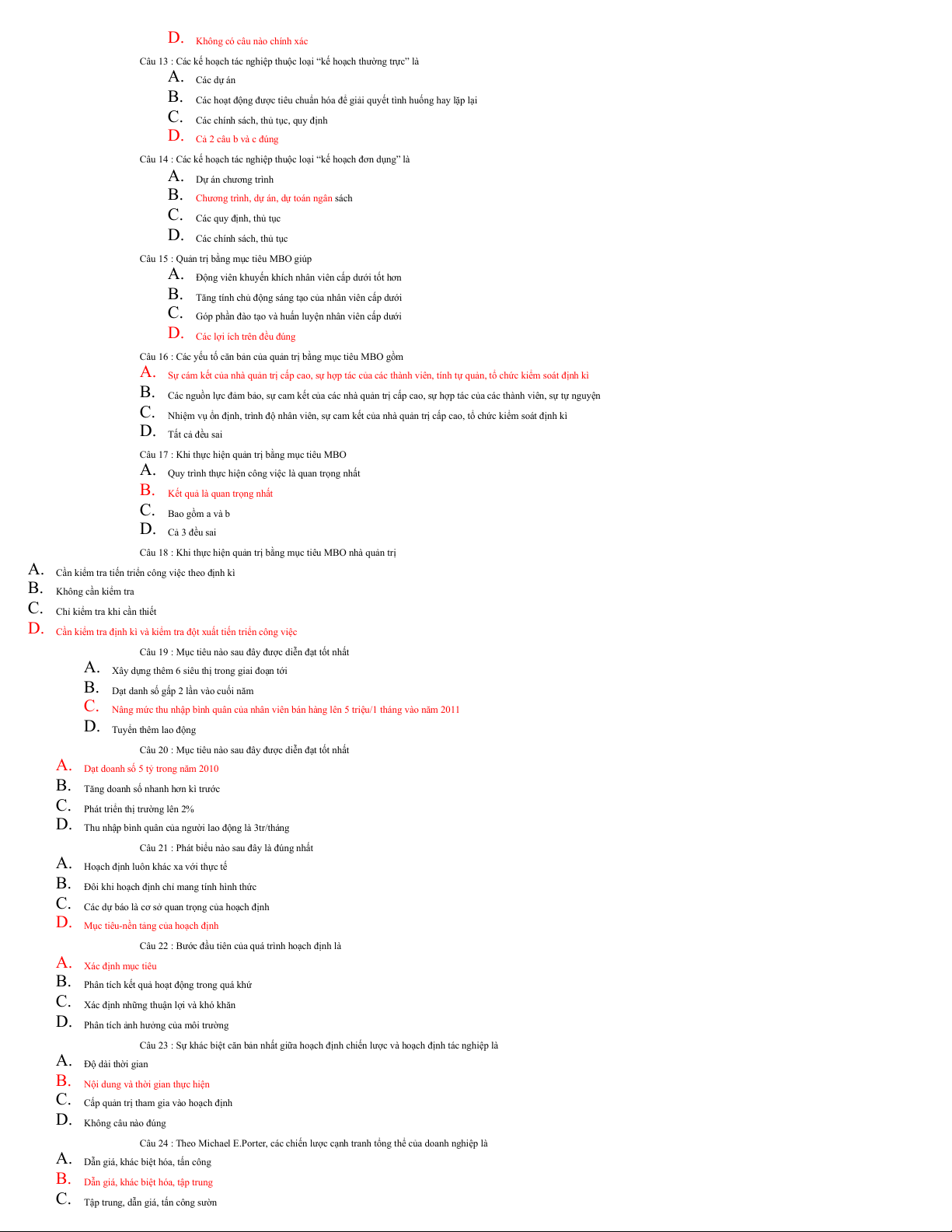 Câu 4 : “Hoạch định nhằm xác định mục tiêu cần đạt được và đề ra……hành động để đạt mục tiêu trong từng khoảng nhất định” A. Quan điểm B. Giải pháp C. Giới hạn D. Ngân sách