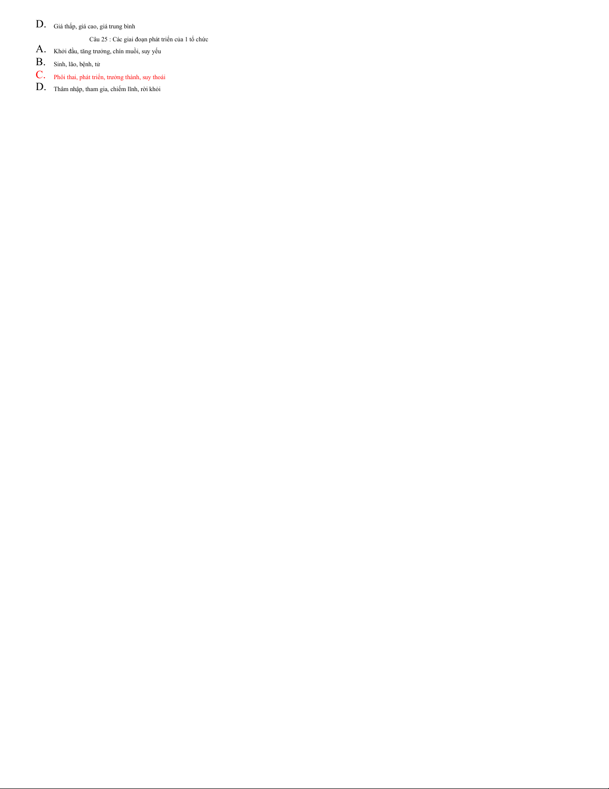 Câu 25 : Các giai đoạn phát triển của 1 tổ chức