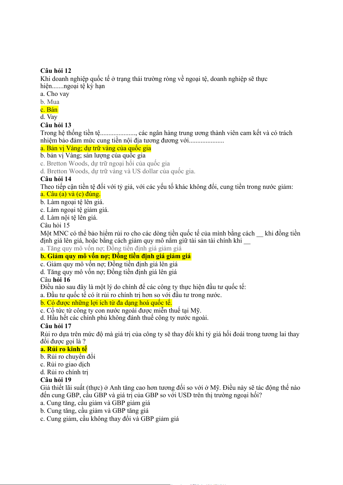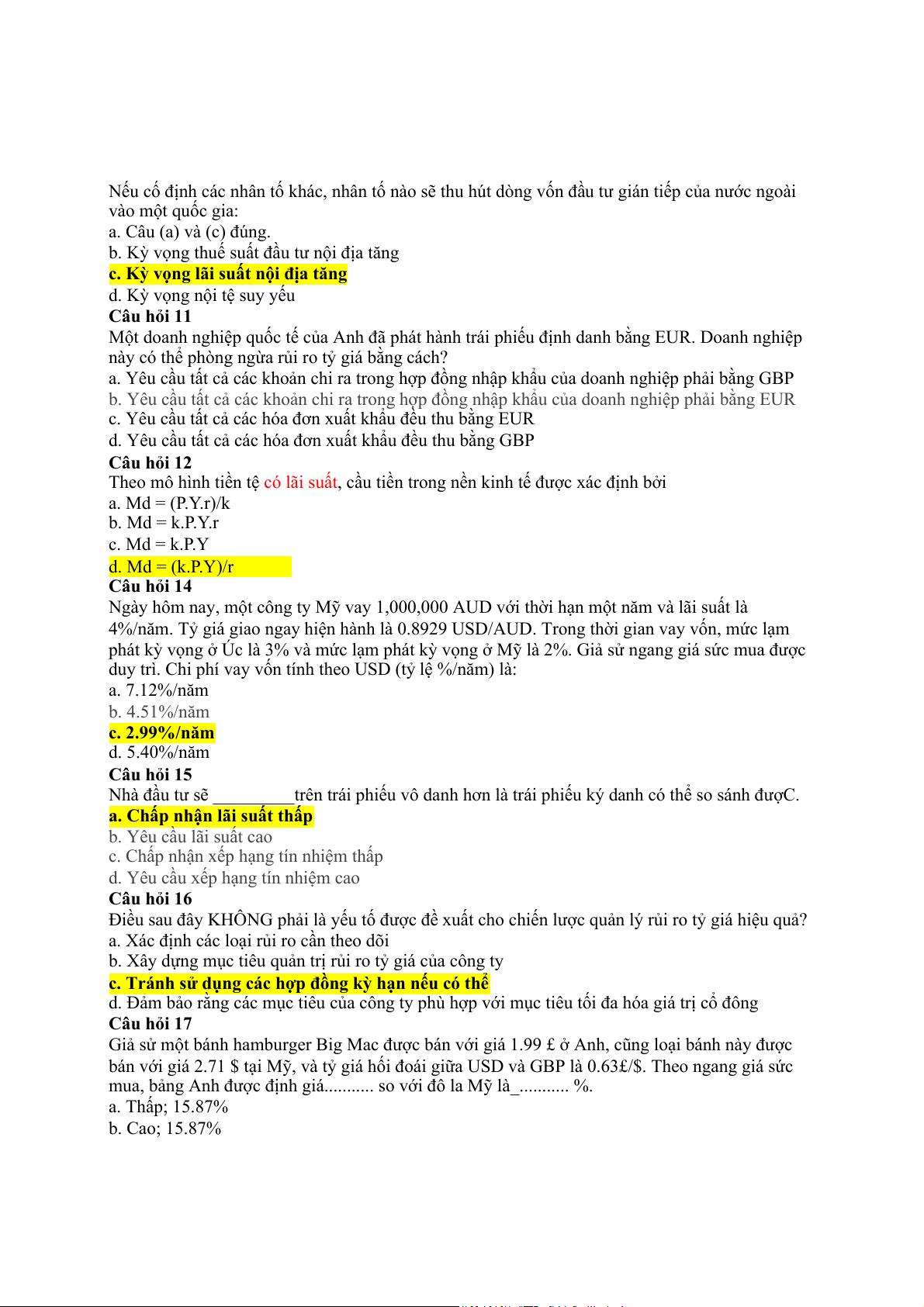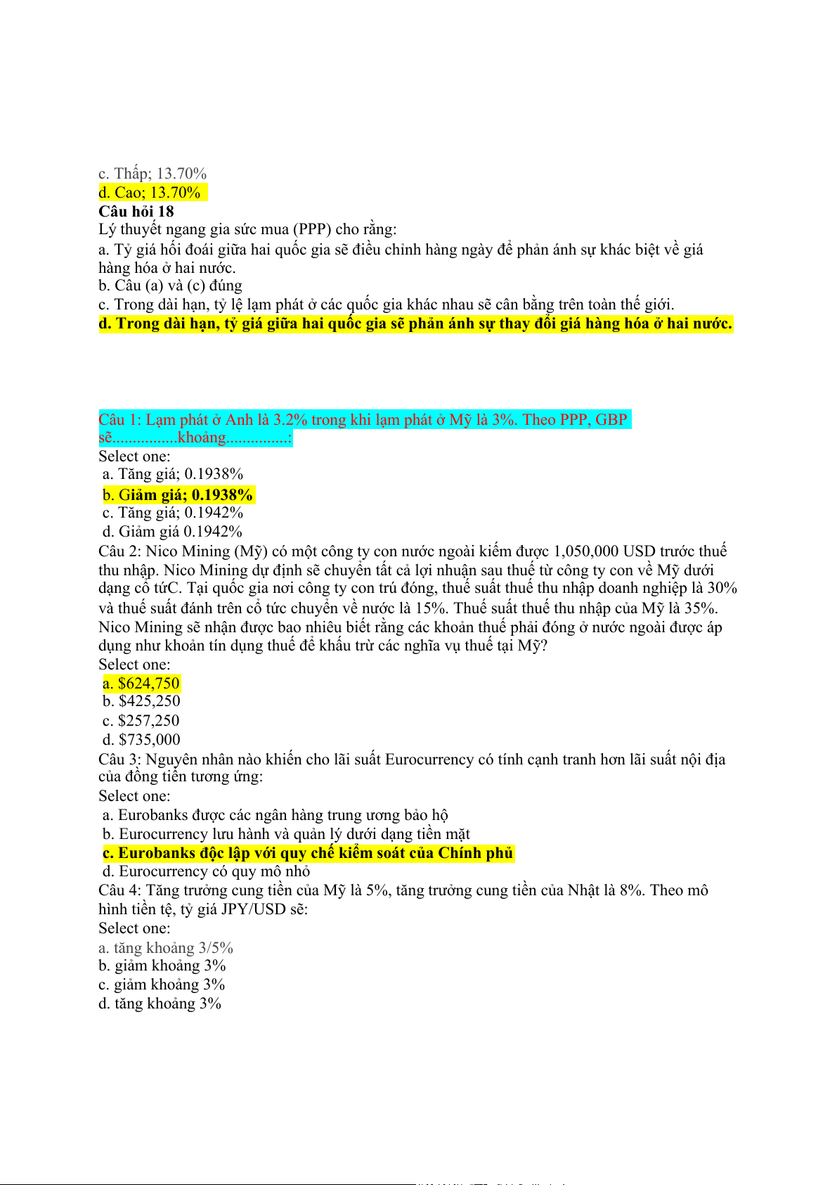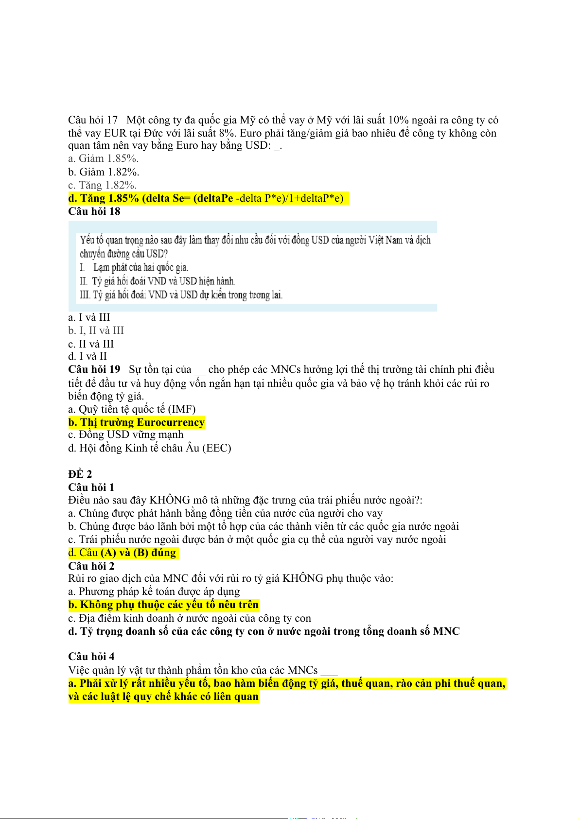 Câu hỏi 17 Một công ty đa quốc gia Mỹ có thể vay ở Mỹ với lãi suất 10% ngoài ra công ty có