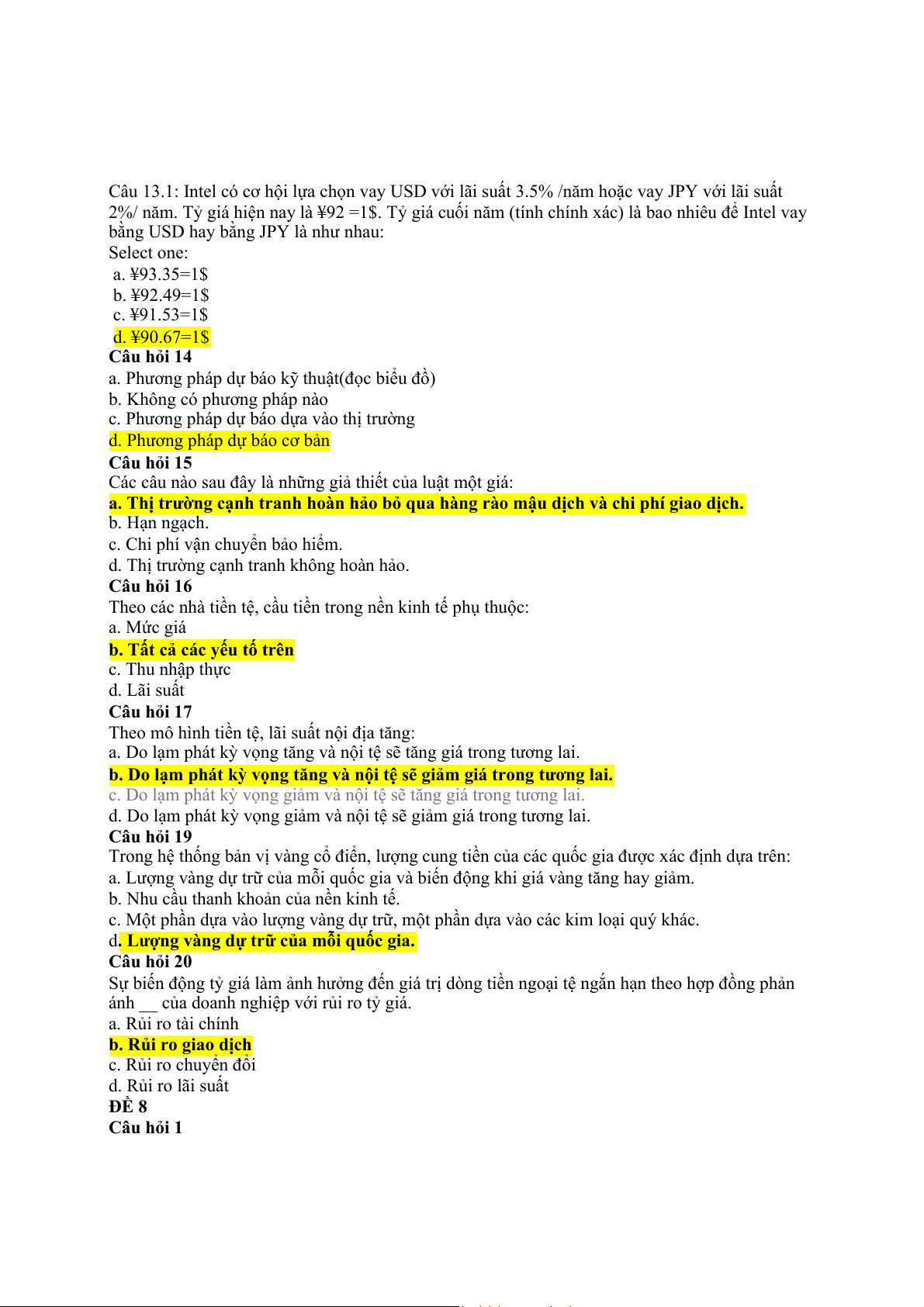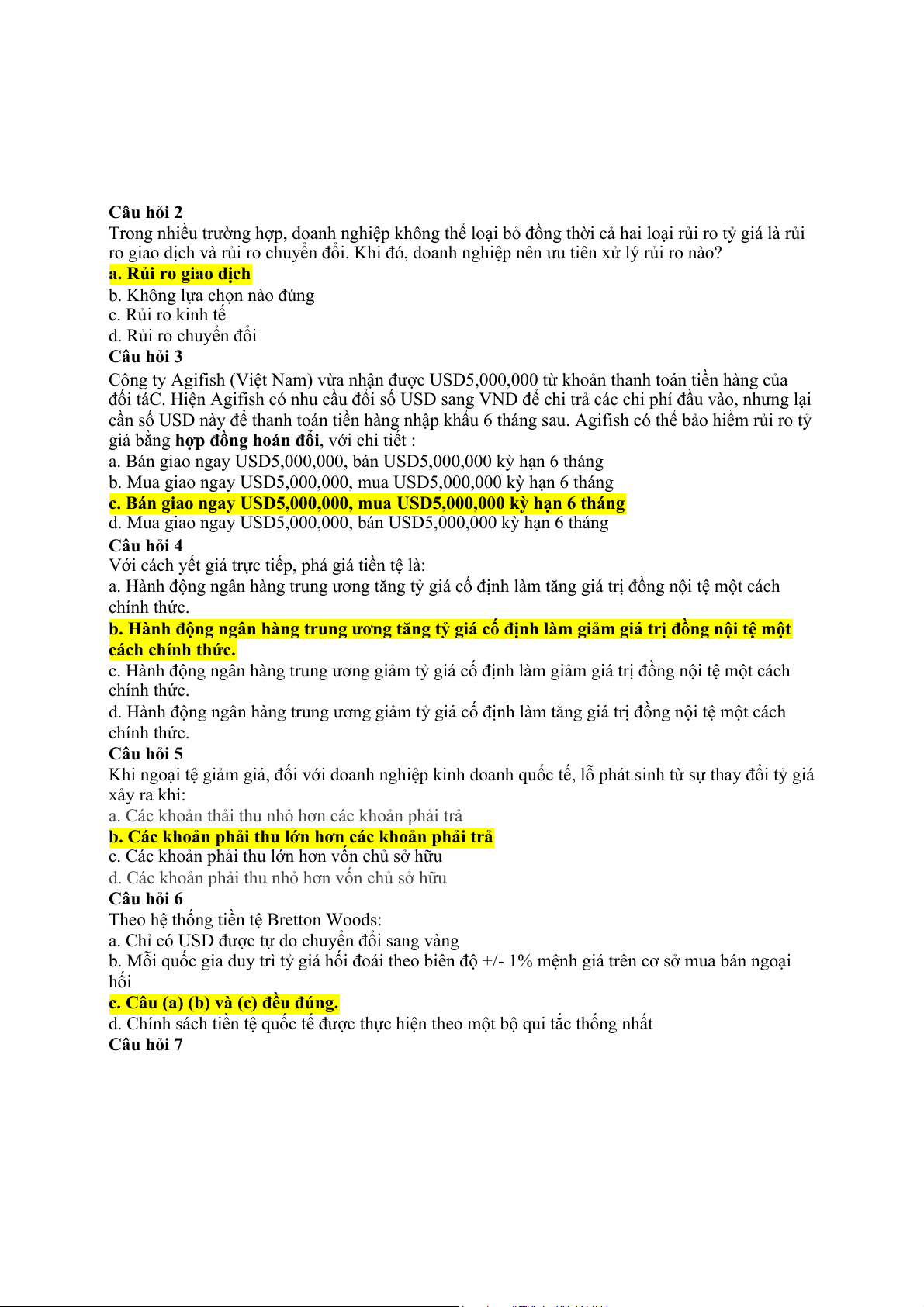 d. Rủi ro kinh tế của tỷ giá Câu hỏi 6