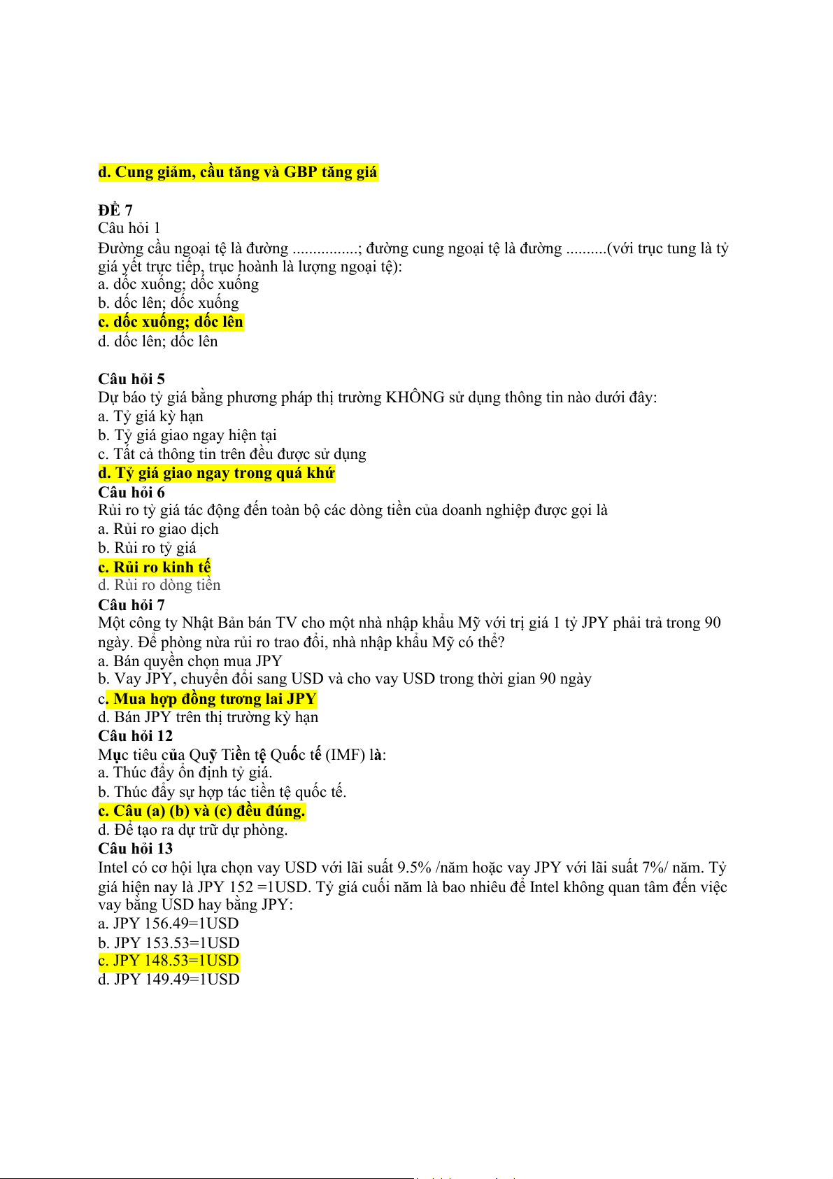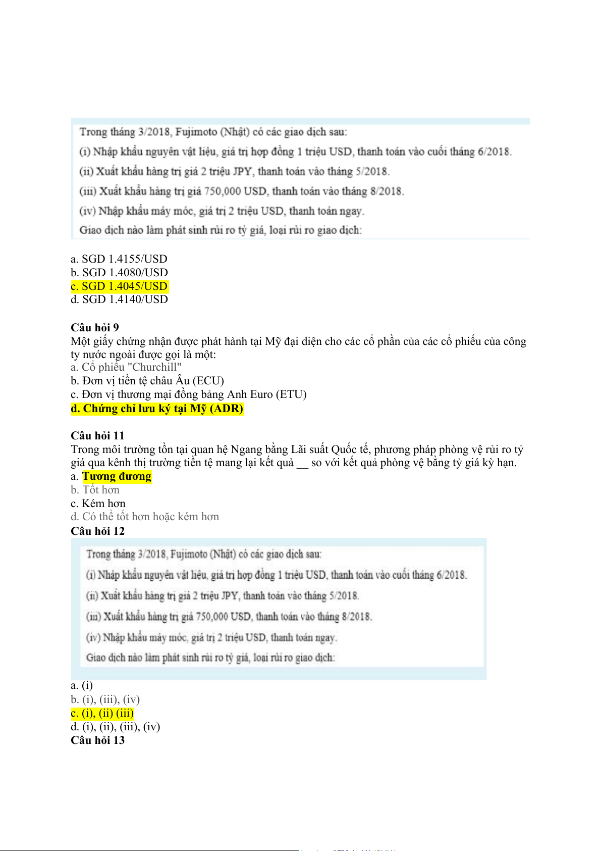 d. Huy động JPY tại Nhật Bản vì chi phí thấp hơn Câu hỏi 11