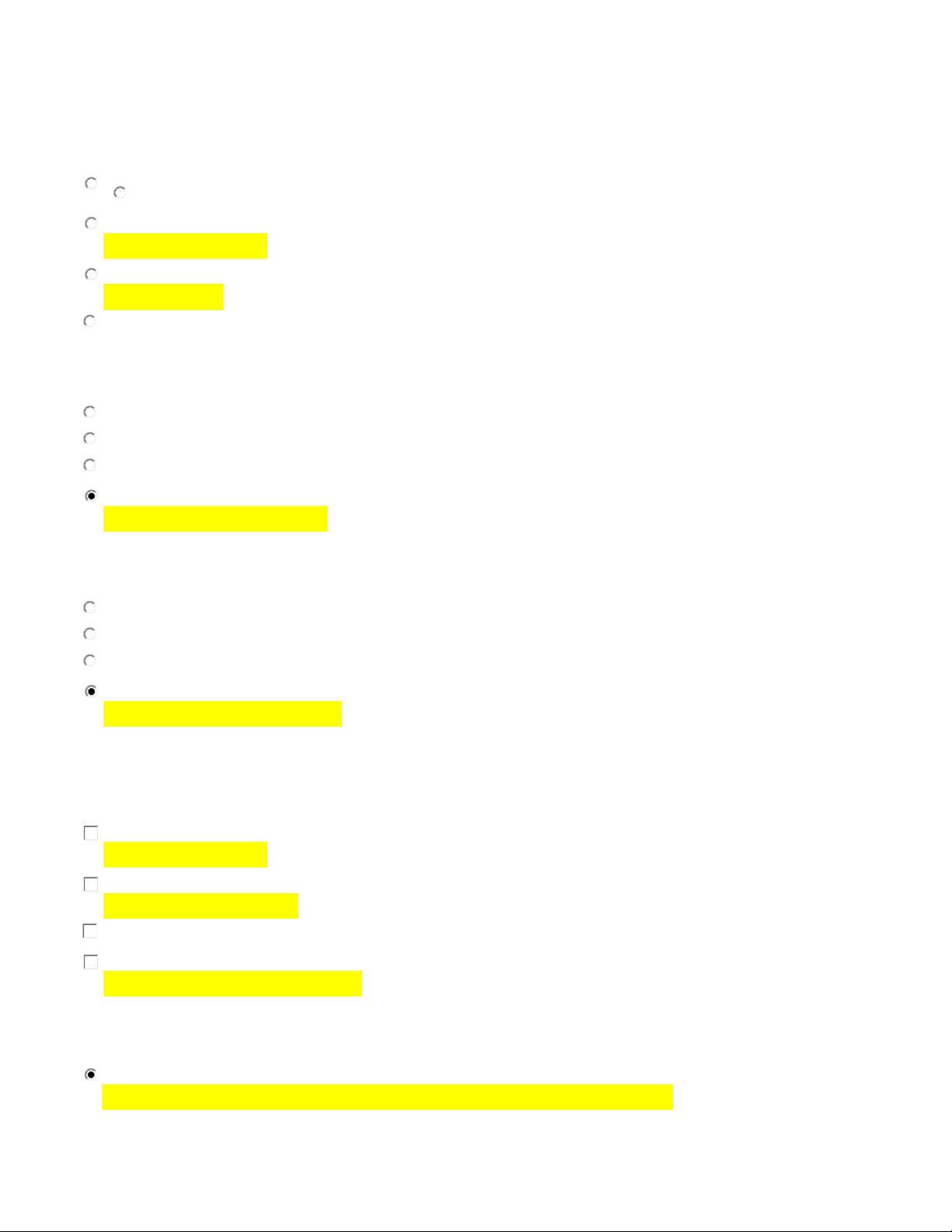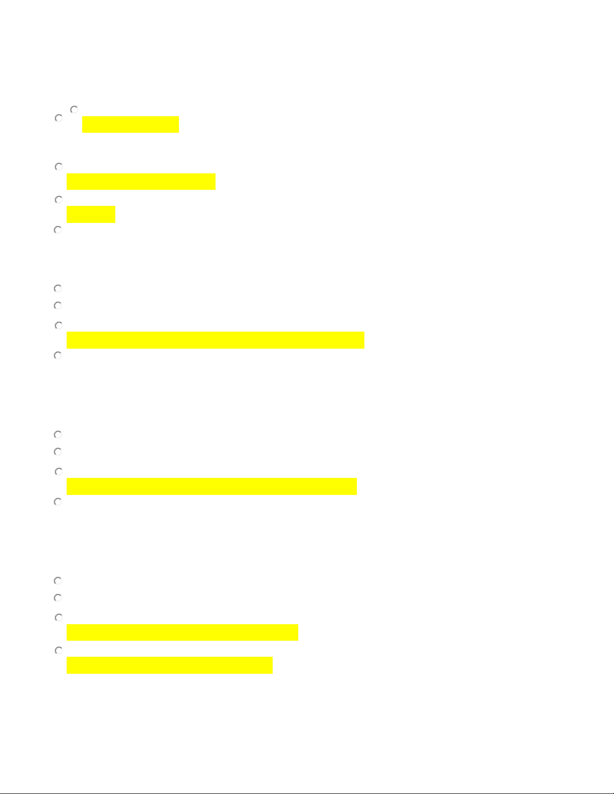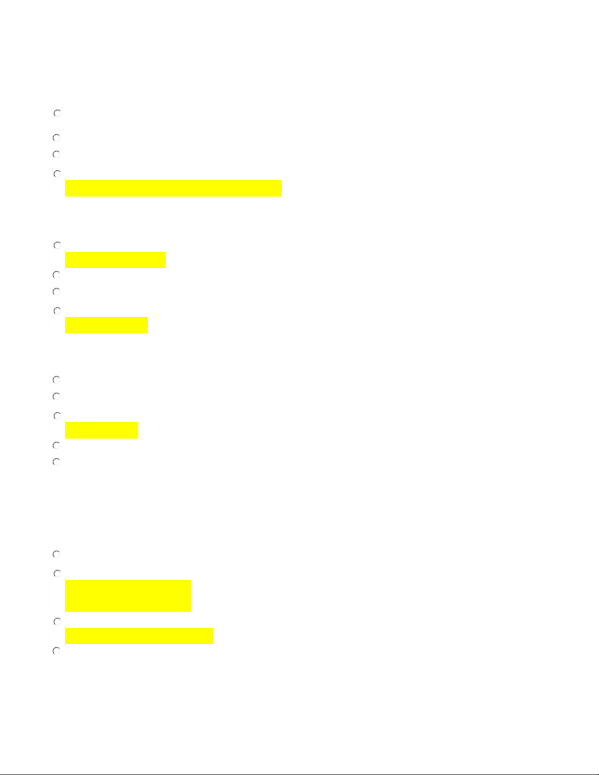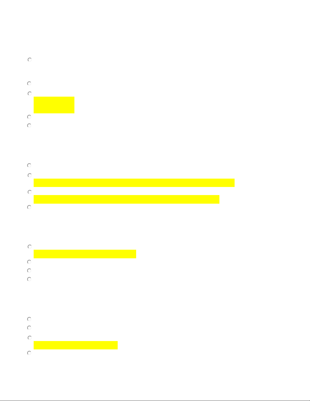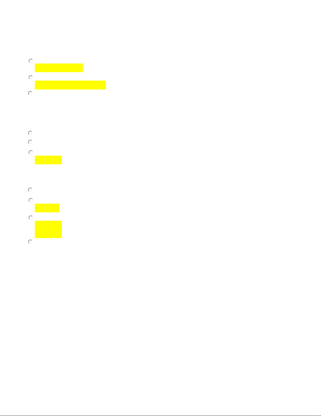 21. Testing is focusing on improve: lOMoAR cPSD| 58886076 Chọn một: a. Software Quality. b. Software Error c. Software Design. d. Software Programming. 22. Software Engineer should: Chọn một: