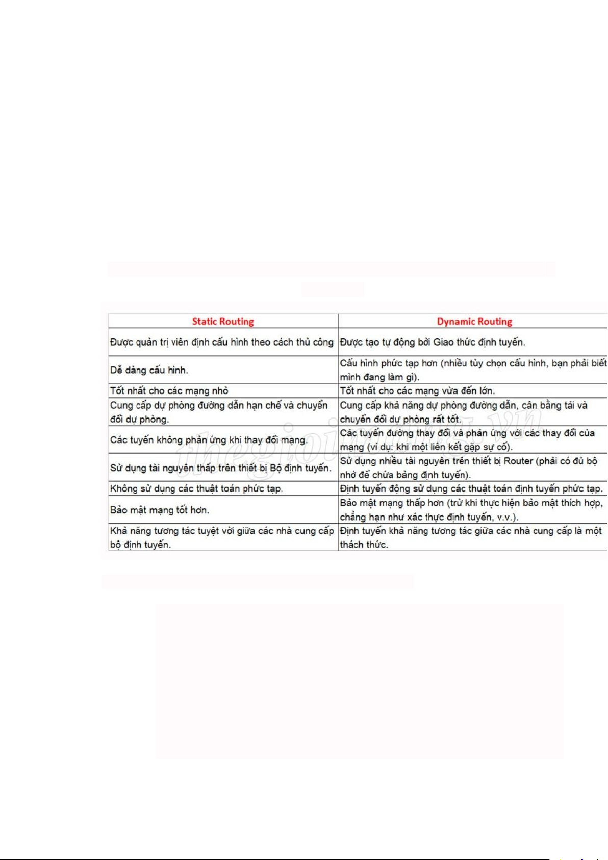 • Dưới đây là các đặc điểm của các định tuyến tĩnh và động: