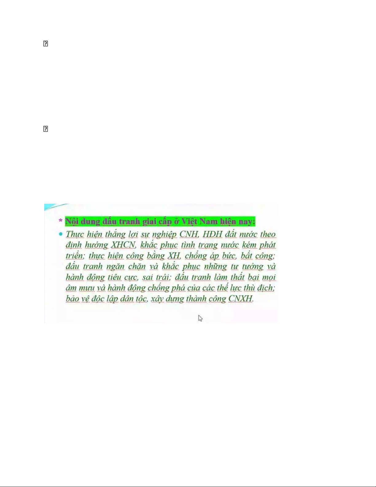 Nội dung chủ yếu của cuộc đấu tranh giai cấp ở Việt Nam hiện nay, là thực hiện thắng