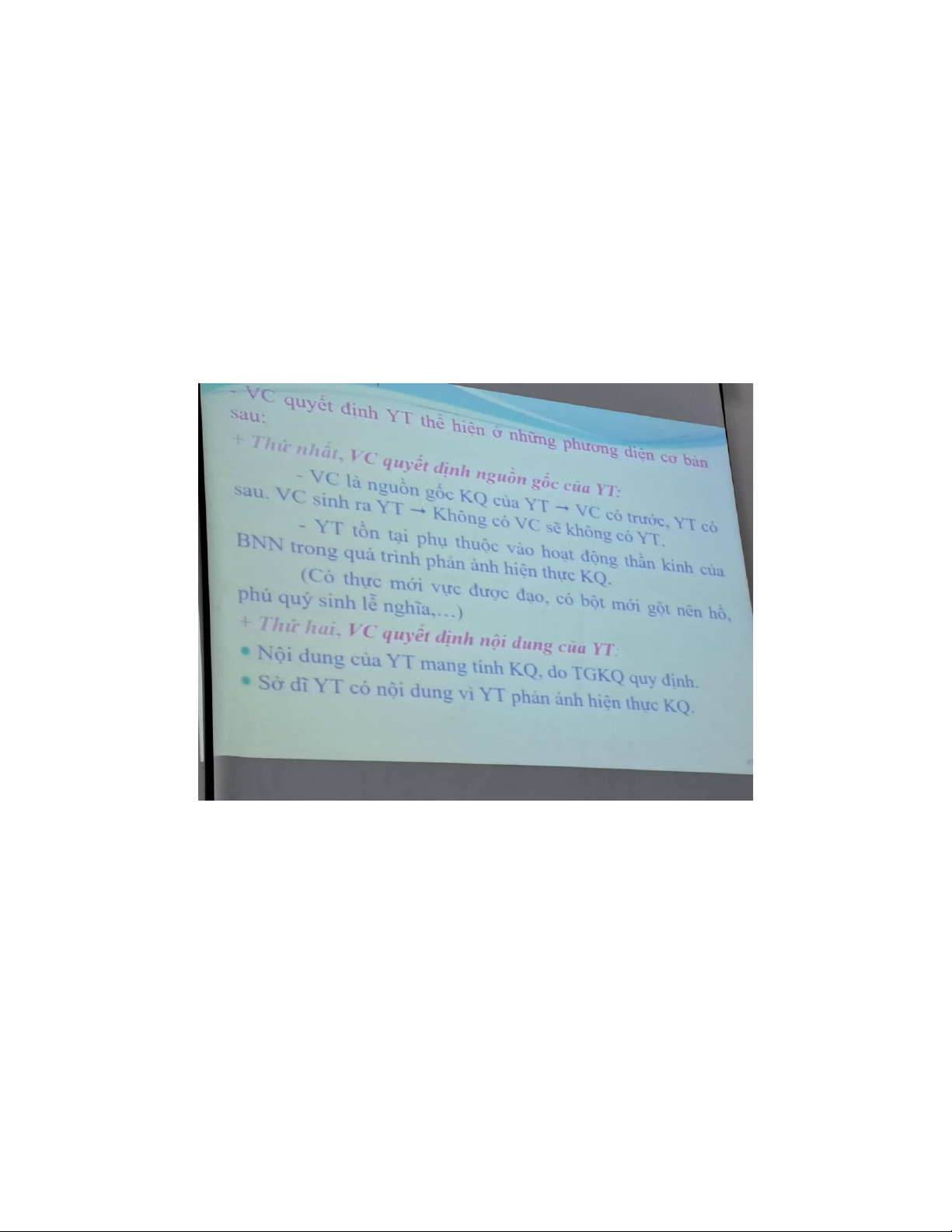 • Vật chất quyết định nguồn gốc của ý thức: Không có vật chất sẽ không
