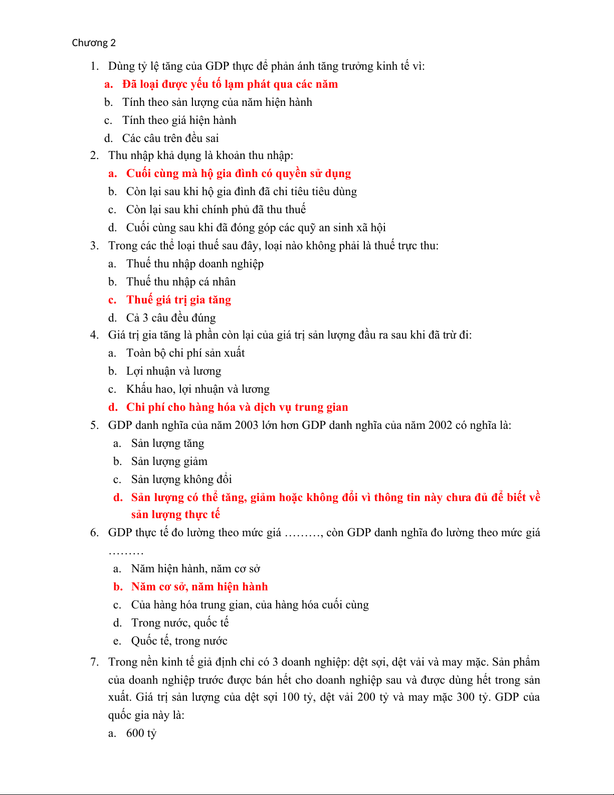 c. Tính theo giá hiện hành d. Các câu trên đều sai