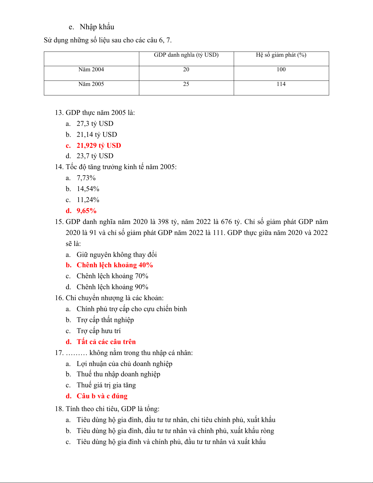9. Giả sử GDP thực tế của nước A là 100 tỉ đô la và B là 50 tỉ đô la; dân số của cả hai