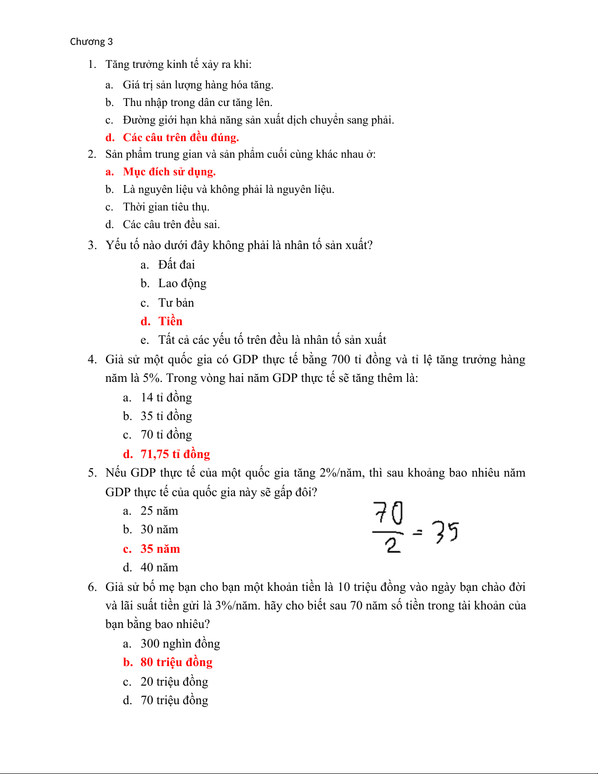 5. Nếu GDP thực tế của một quốc gia tăng 2%/năm, thì sau khoảng bao nhiêu năm