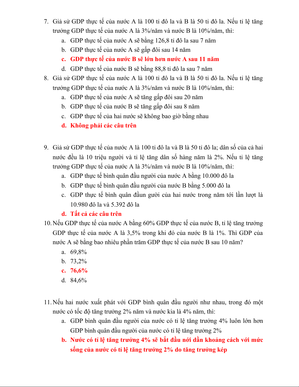 7. Giả sử GDP thực tế của nước A là 100 tỉ đô la và B là 50 tỉ đô la. Nếu tỉ lệ tăng