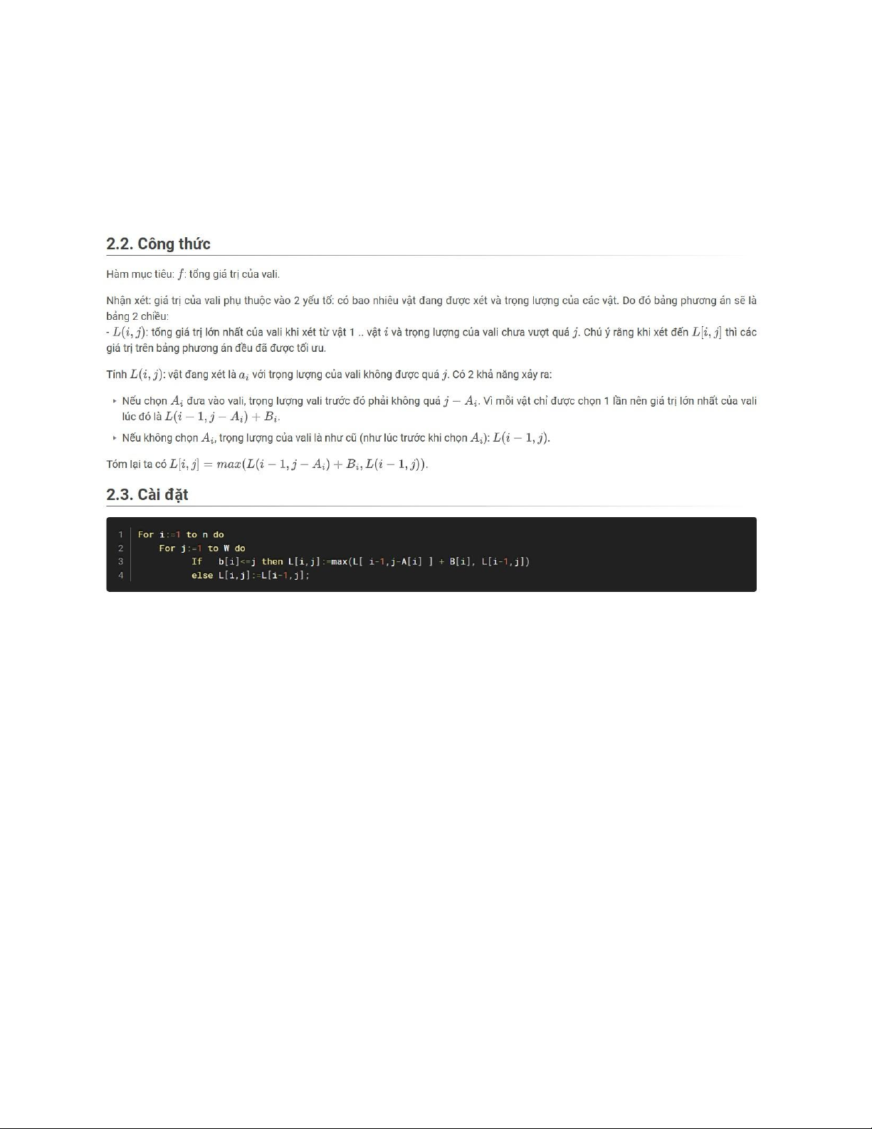 If b[i]<=j then L[i,j]:=mảx(L[ i-1,j-A[i] ] + B[i], L[i- 1,j])