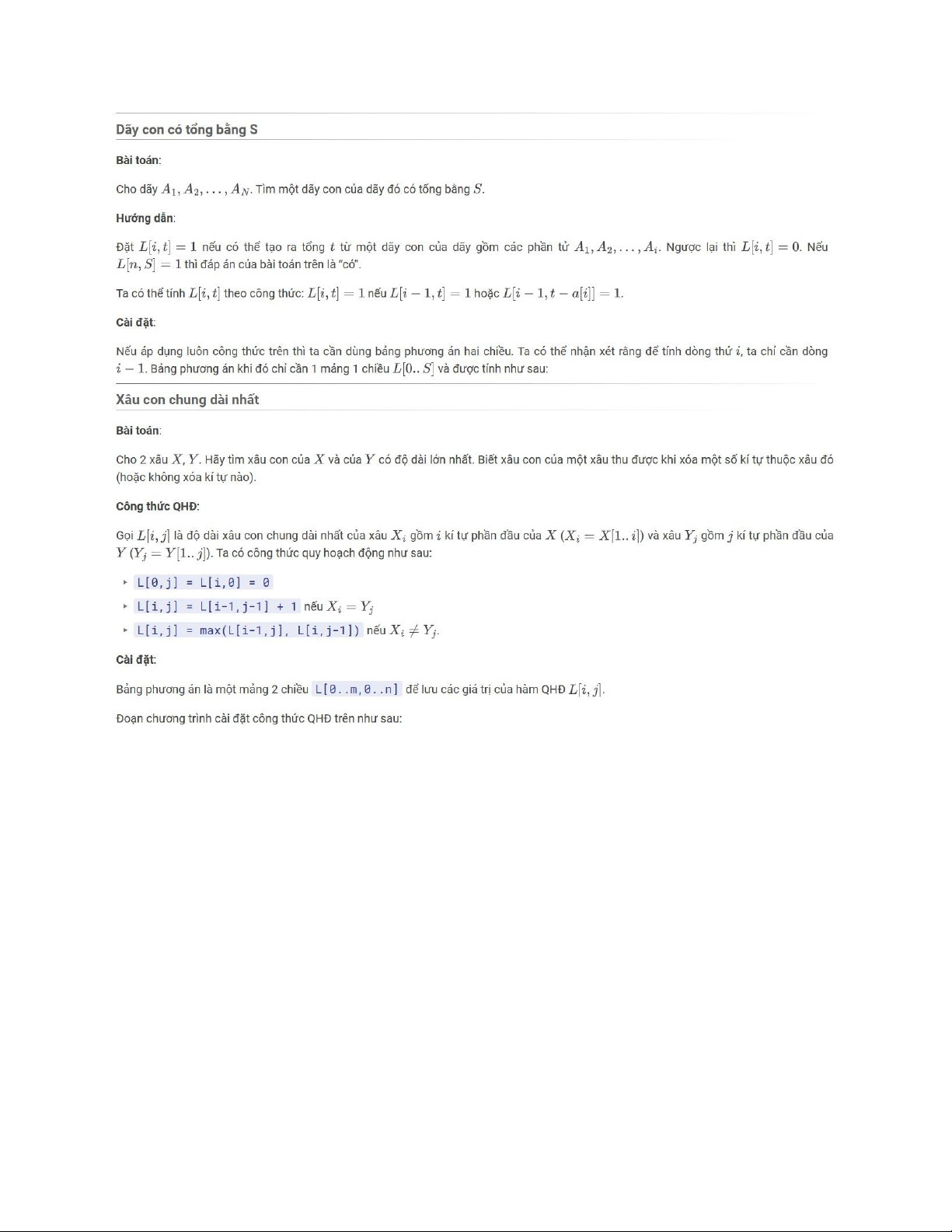 Gọi Li là độ dài dãy con tăng dài nhất, các phấ$n tử lấy trong miền$ từ A1 đền Ai và phấ$n tử