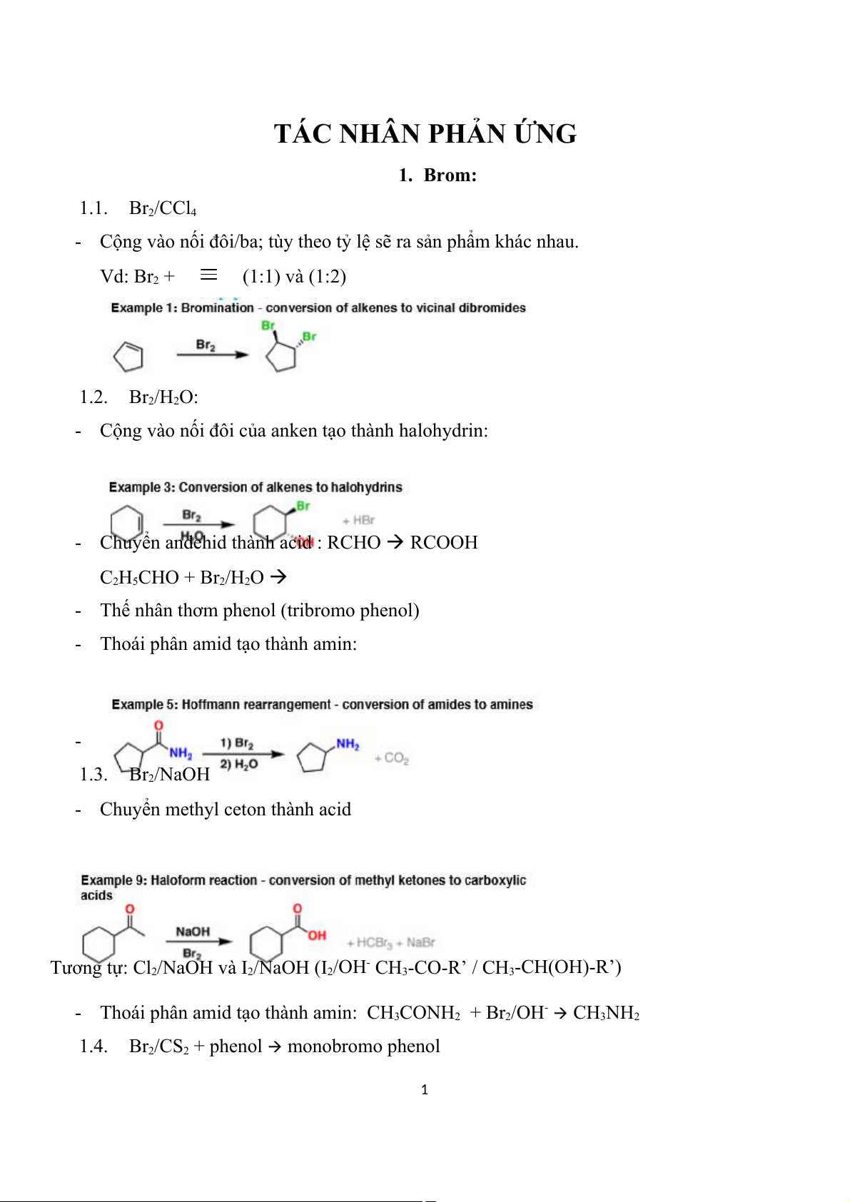 - Thoái phân amid tạo thành amin: - 1.3. Br2/NaOH