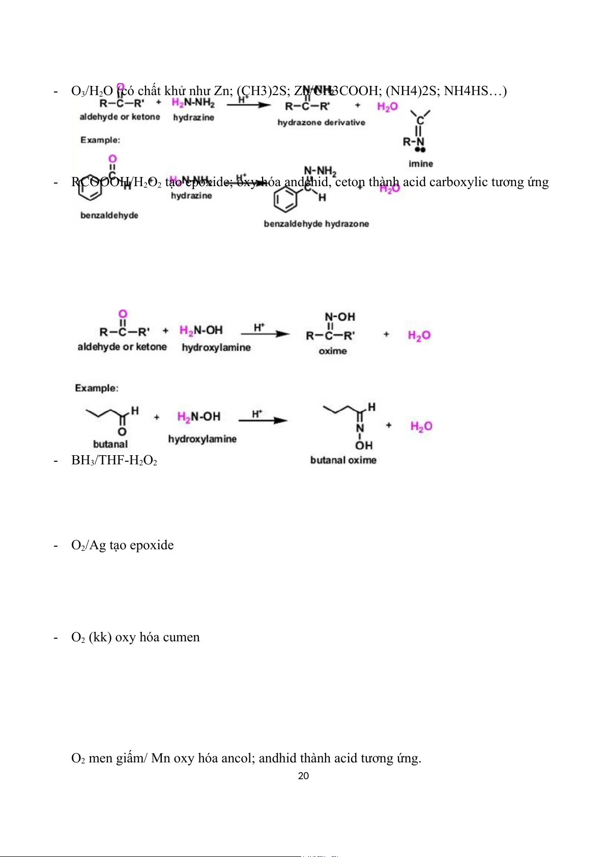 3/H2O (H3O hoặc H2O2) tạo acid và ceton tương ứng 19