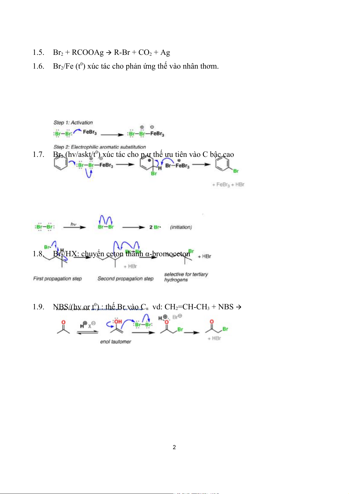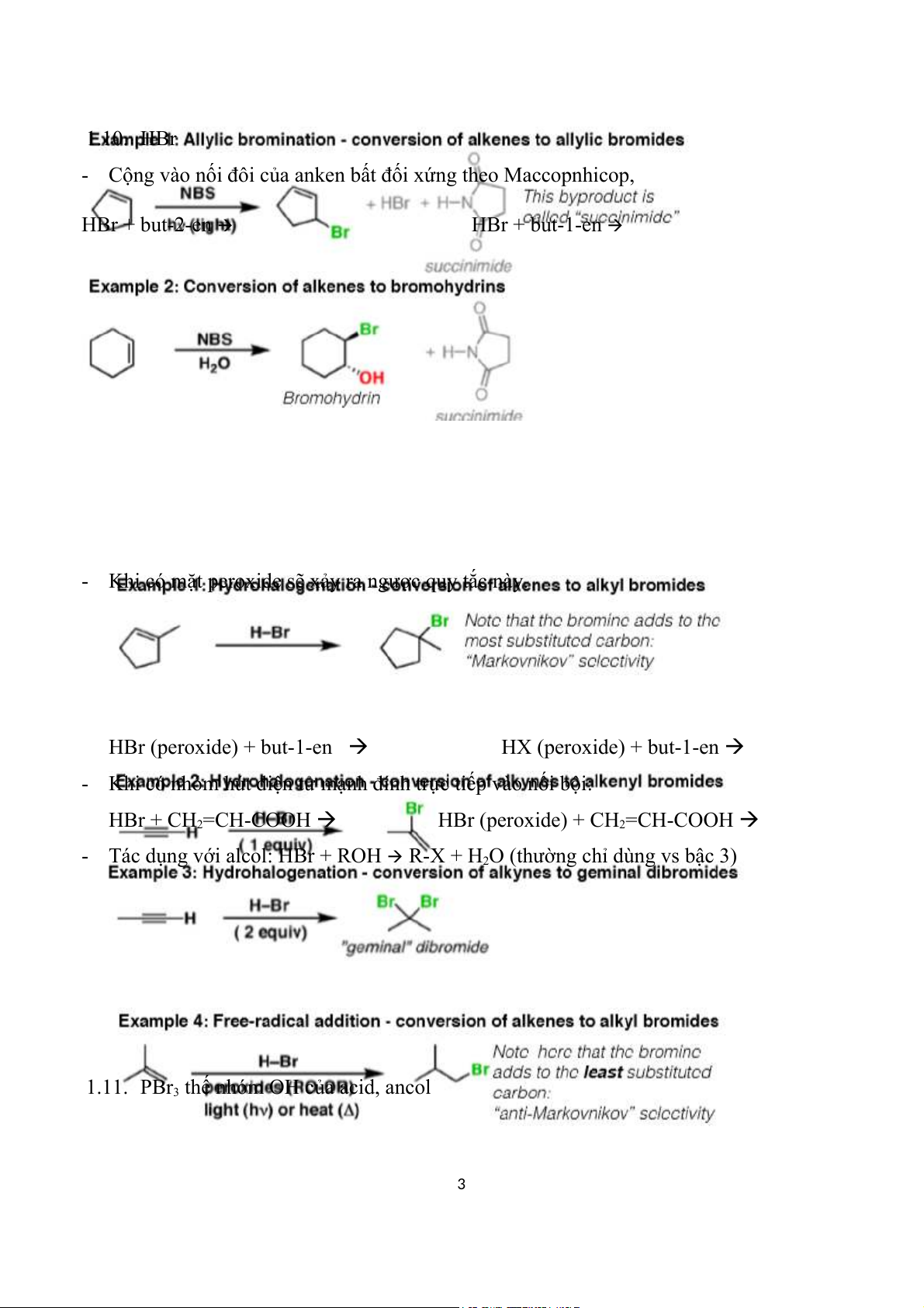 1.9. NBS/(hv or t0) : thế Br vào Cα vd: CH2=CH-CH3 + NBS 2 1.10. HBr
