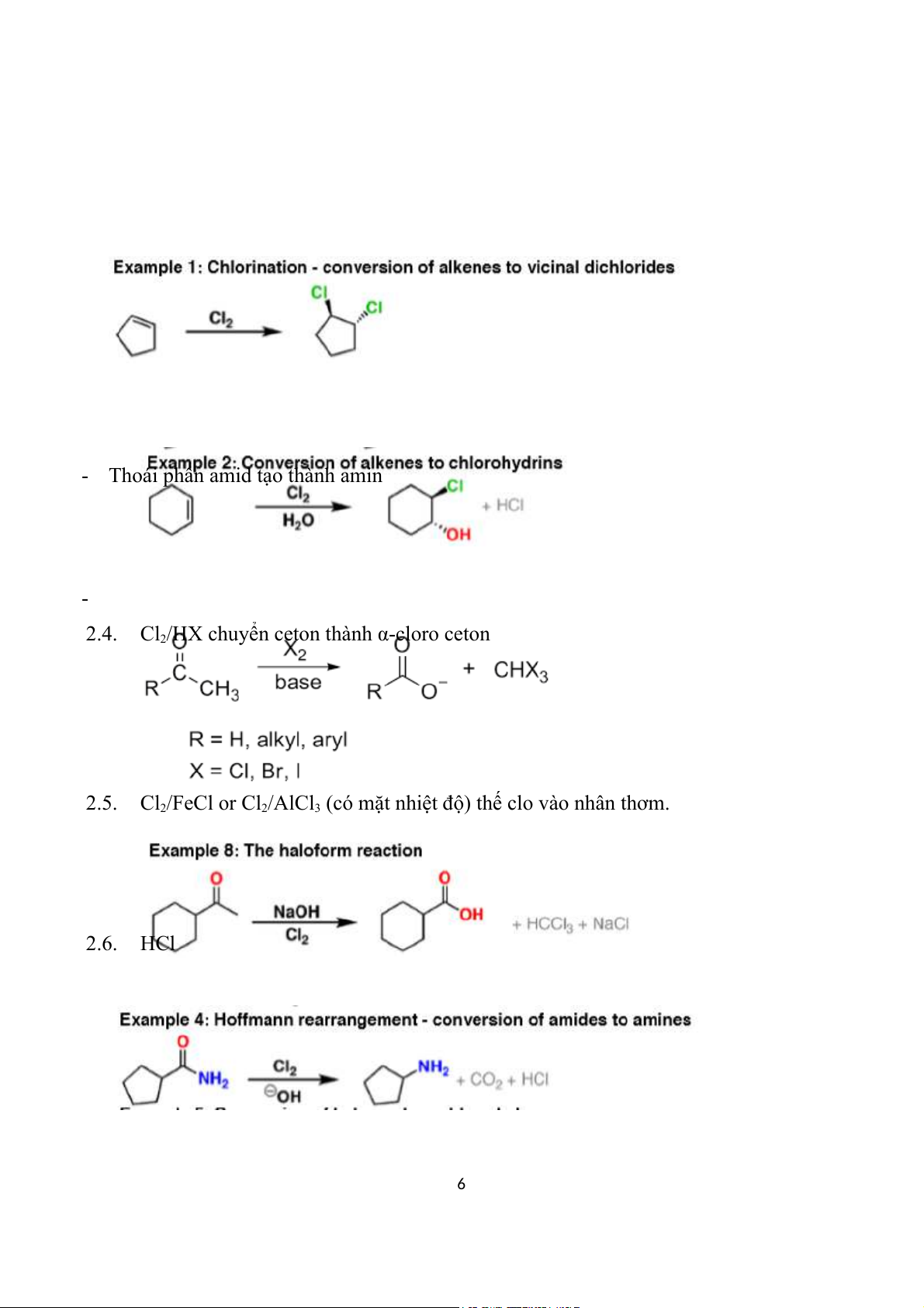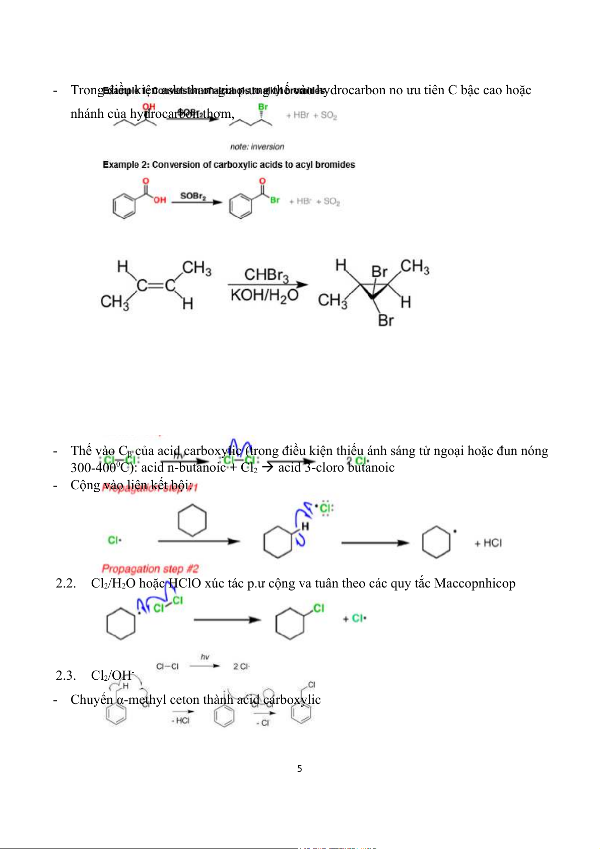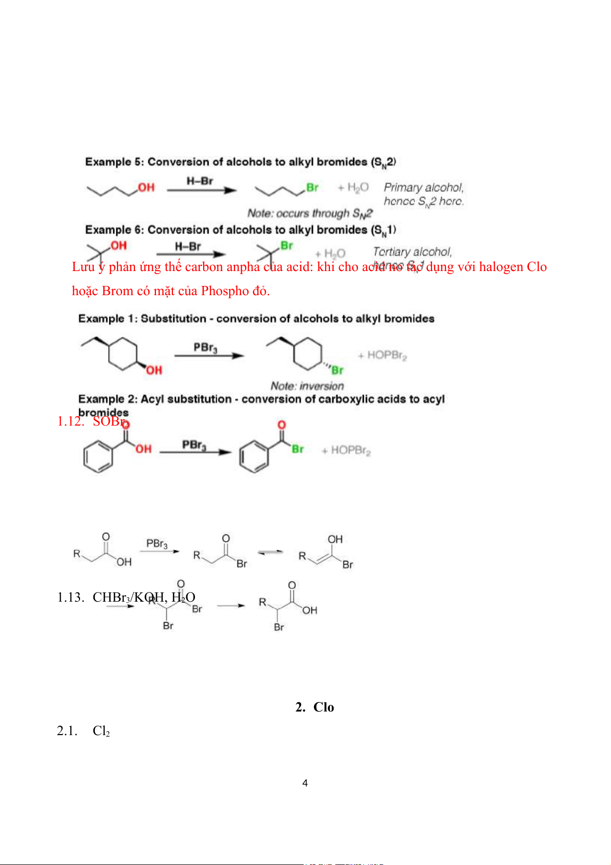 hoặc Brom có mặt của Phospho đỏ. 1.12. SOBr2 1.13. CHBr3/KOH, H2O 2. Clo 2.1. Cl2 4