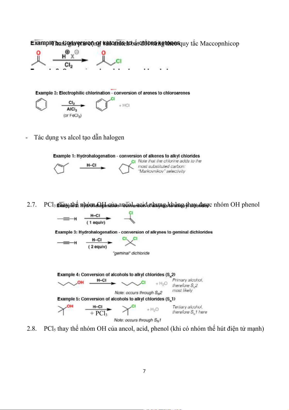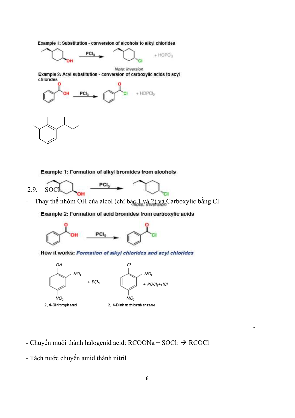 2.8. PCl5 thay thế nhóm OH của ancol, acid, phenol (khi có nhóm thế hút điện tử mạnh) 7 2.9. SOCl2