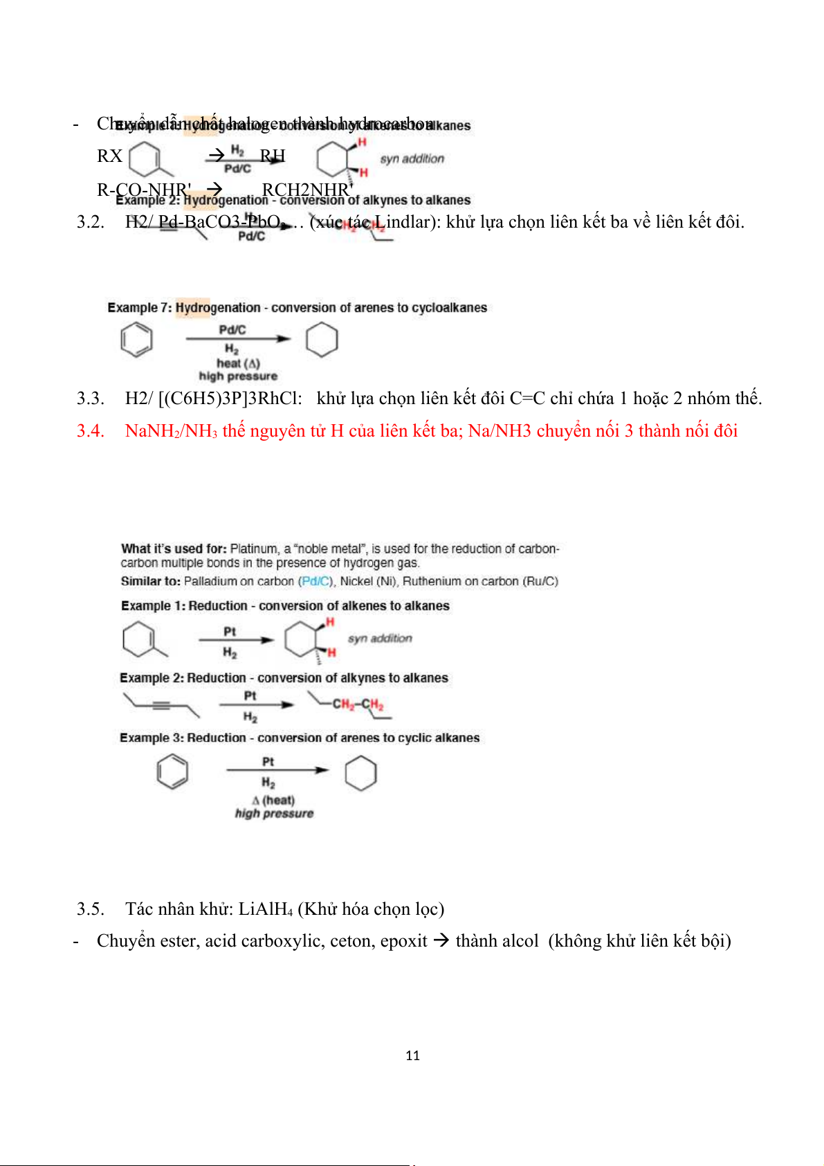 2.13. COCl2/AlCl3 gắn COCl vào nhân thơm 3. Hydro 3.1. H2, (Ni/Pd/Pt)