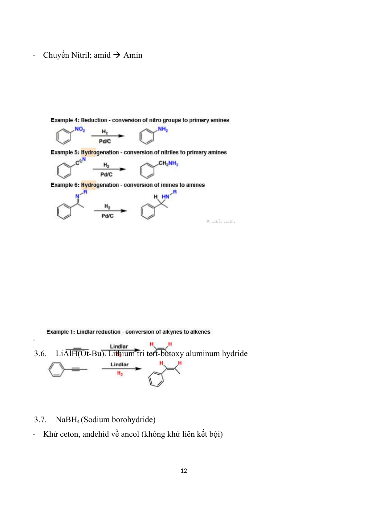 - Chuyển Nitro; imin; Nitril, amid thành amin