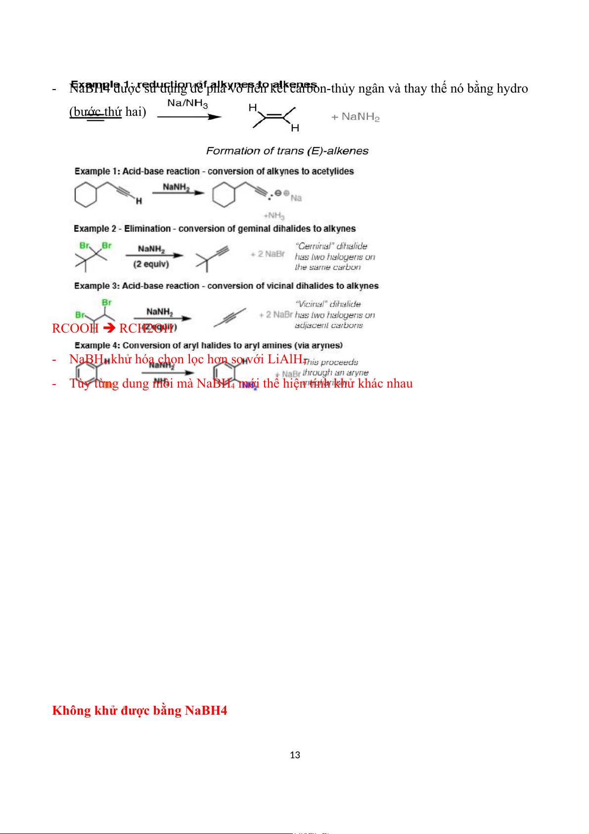 - Tùy từng dung môi mà NaBH4 mới thể hiện tính khử khác nhau