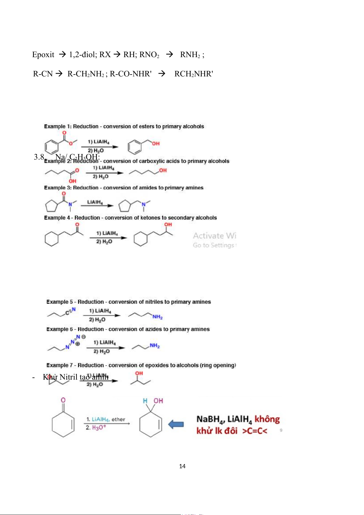 Không khử được bằng NaBH4 13 Epoxit 1,2-điol; RX RH; RNO 2 RNH 2 ; R-CN R-CH 2NH2 ; R-CO-NHR' RCH 2NHR' 3.8. Na/ C2H5OH: - Khử Nitril tạo amin 14 3.9. NaH