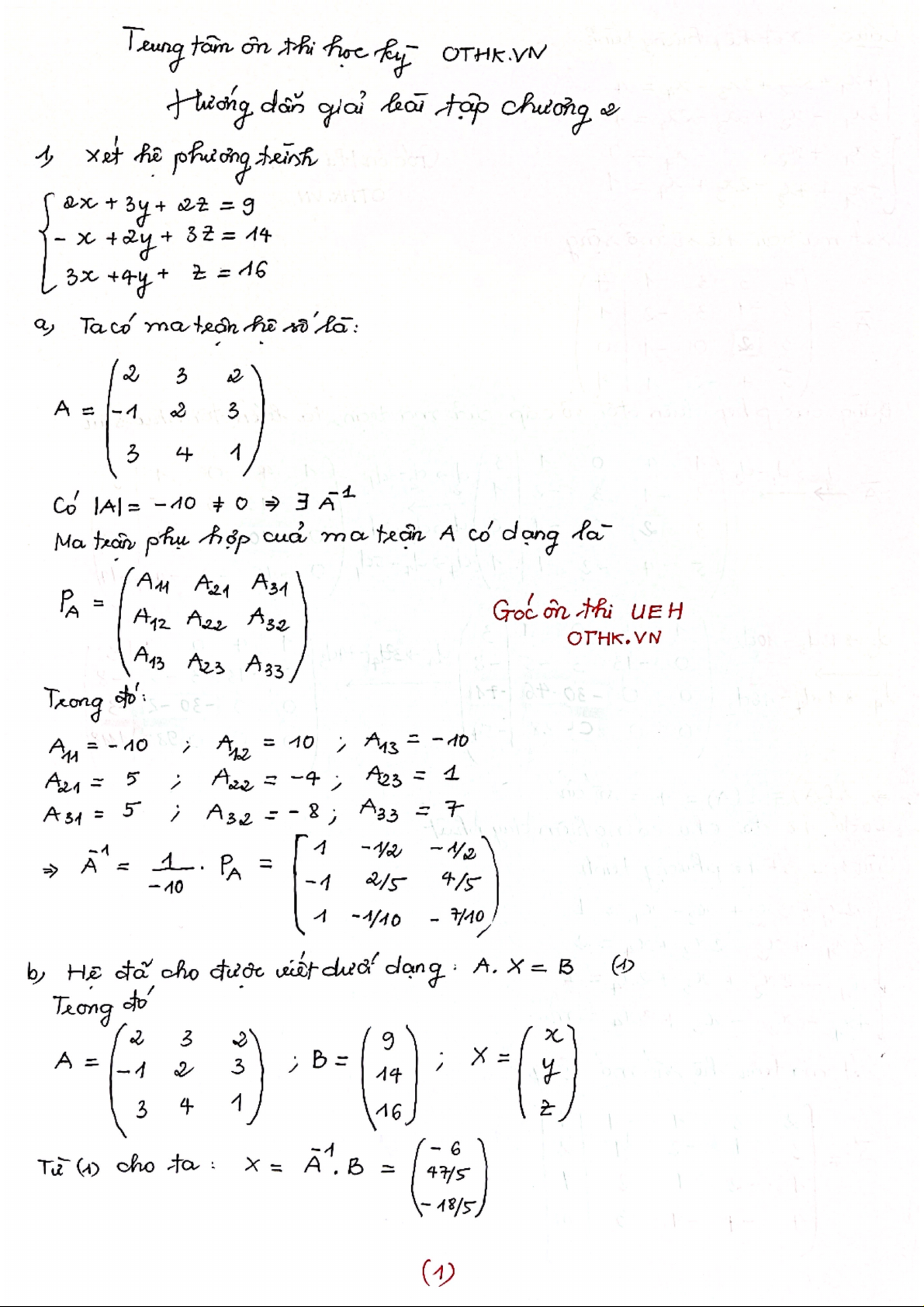 Ôn thi học kỳ - Chữa sách bài tập Chương 2 môn Toán cao cấp | Đại học Kinh tế Thành phố Hồ Chí Minh. Tài liệu được sưu tầm giúp bạn tham khảo, ôn tập và đạt kết quả cao. Mời bạn đọc đón xem.