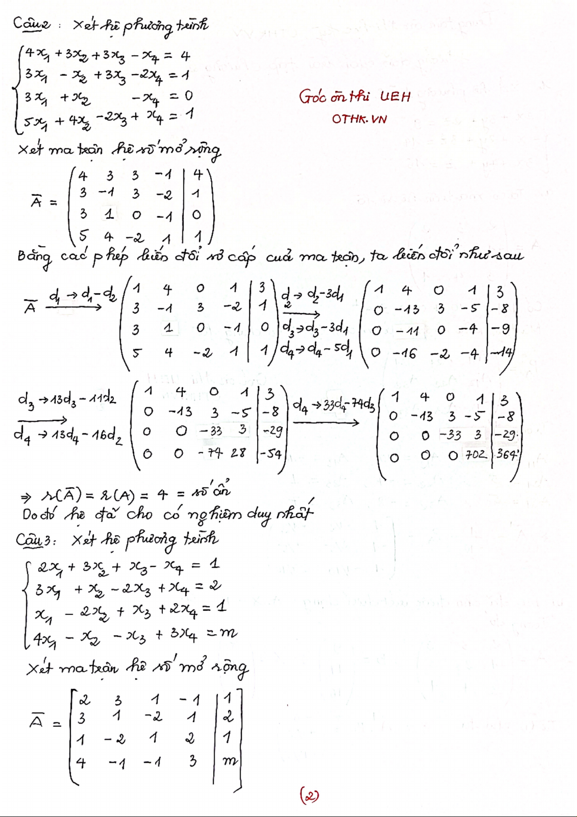 Ôn thi học kỳ - Chữa sách bài tập Chương 2 môn Toán cao cấp | Đại học Kinh tế Thành phố Hồ Chí Minh