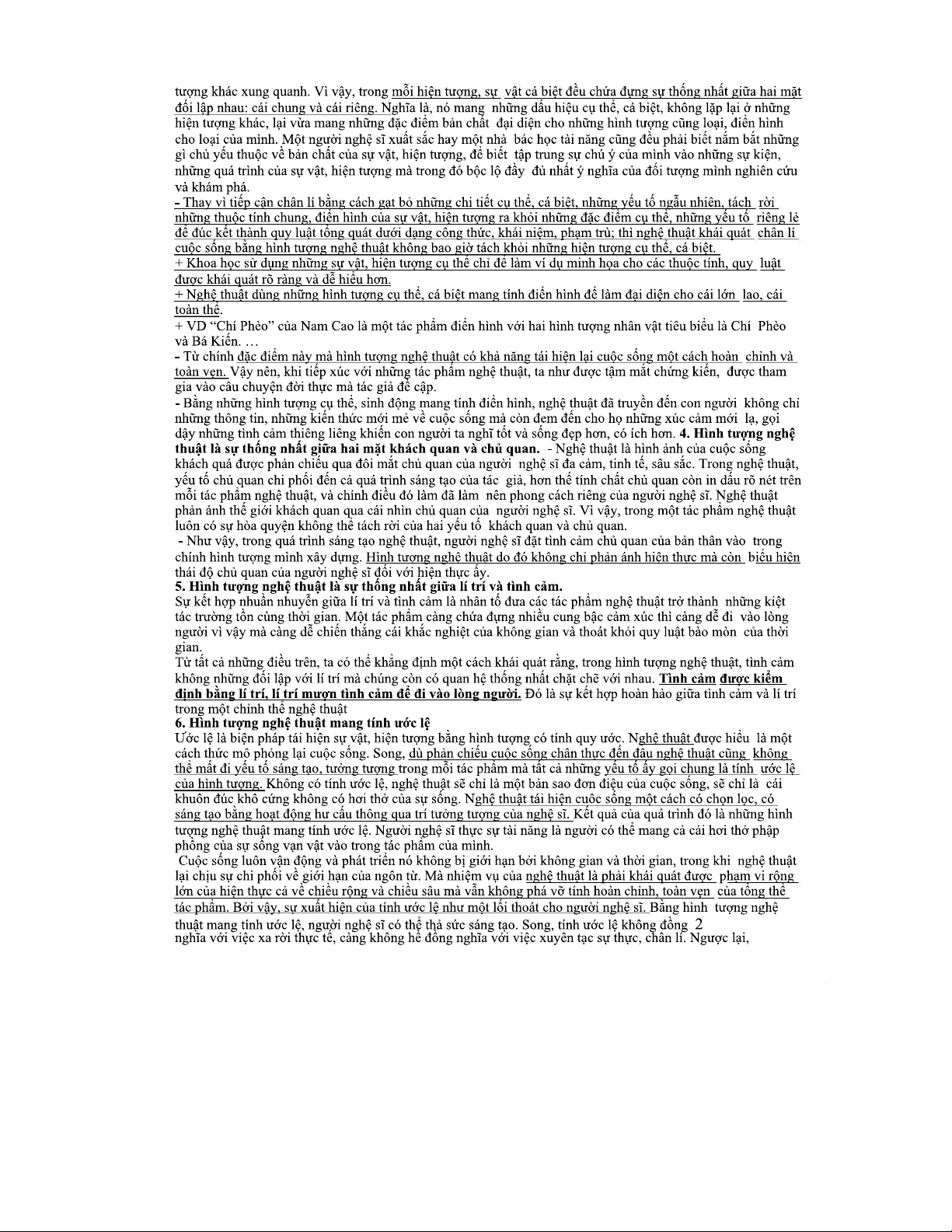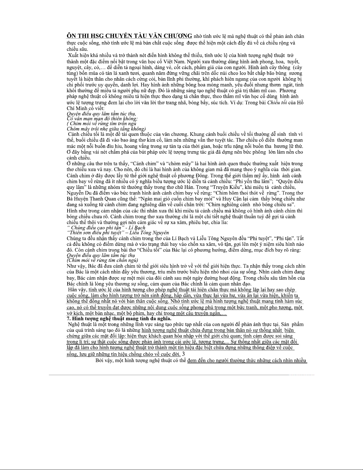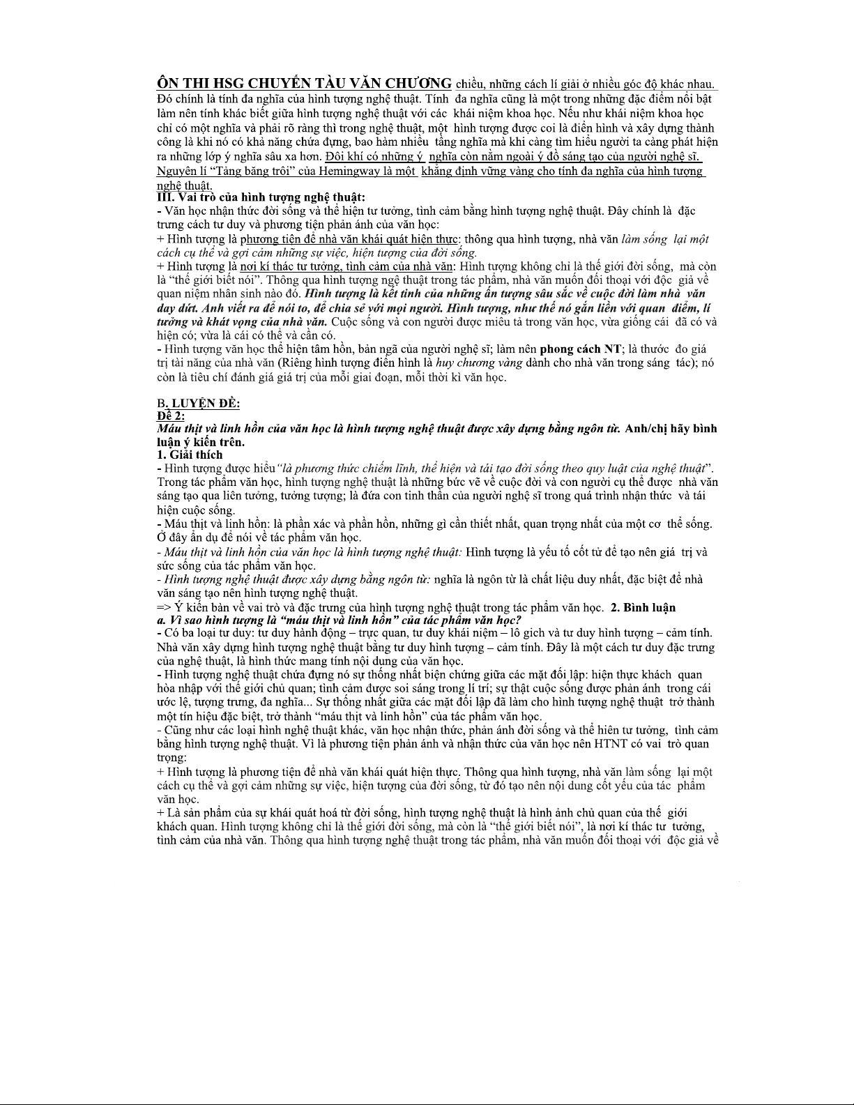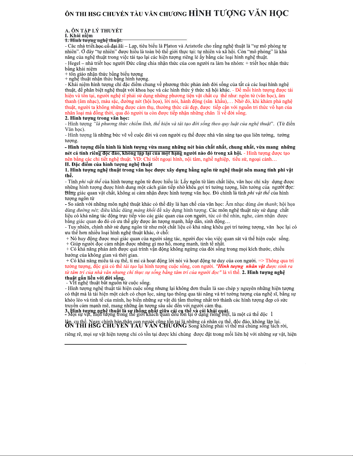 ÔN THI HSG VĂN HỌC: HÌNH TƯỢNG VĂN HỌC ĐẶC TRƯNG CHO NGHỆ THUẬT