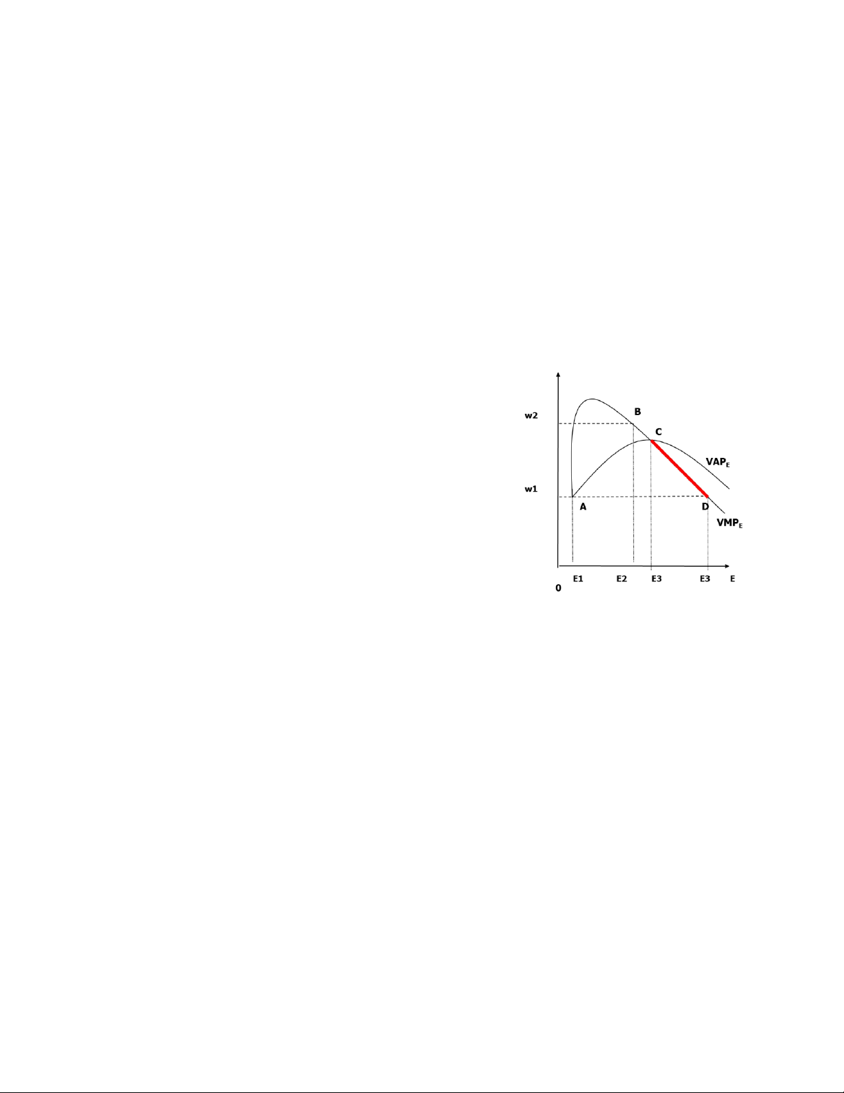 Tối đa hóa LN ⇔ VMPE = w và VMPE giảm dần w tại C.