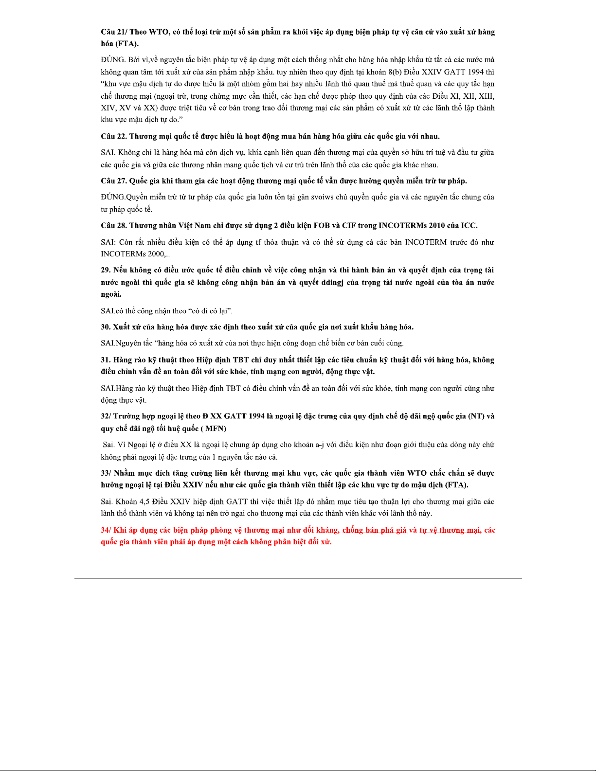 Ôn thi TMQT - Nhận định về Thương mại Quốc tế và Quy định WTO
