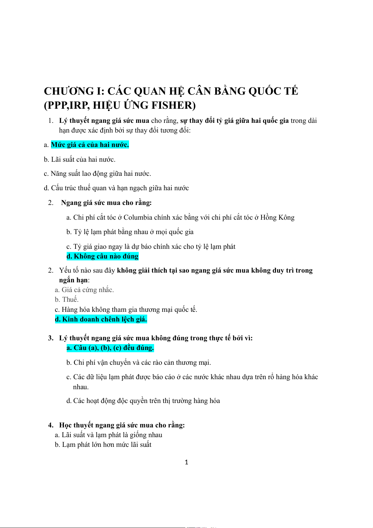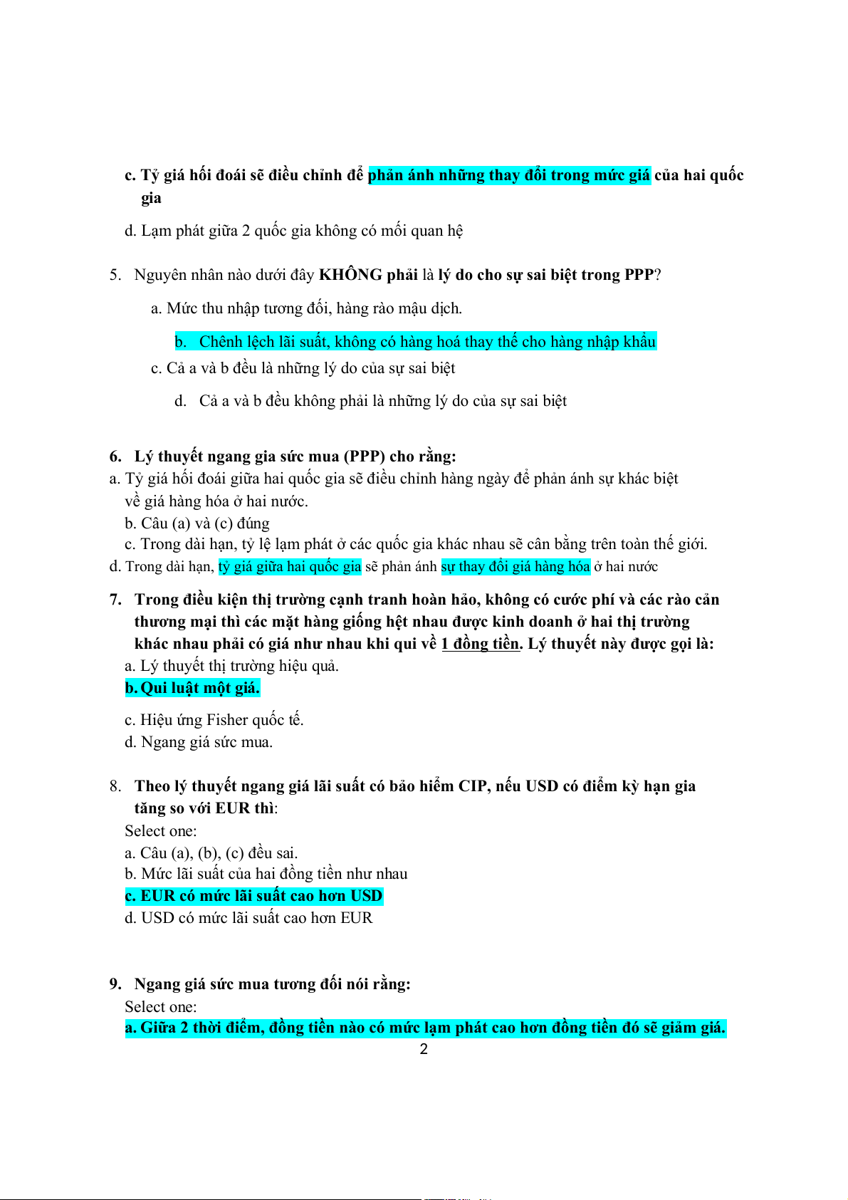 2. Yếu tố nào sau đây không giải thích tại sao ngang giá sức mua không duy trì trong ngắn hạn: a. Giá cả cứng nhắc. b. Thuế.