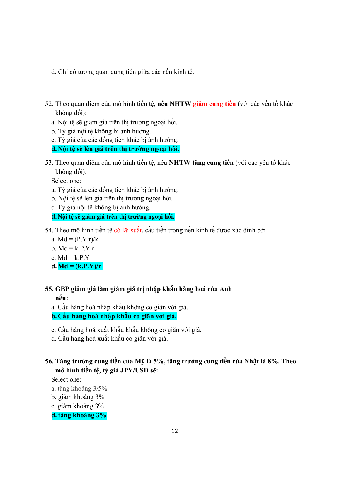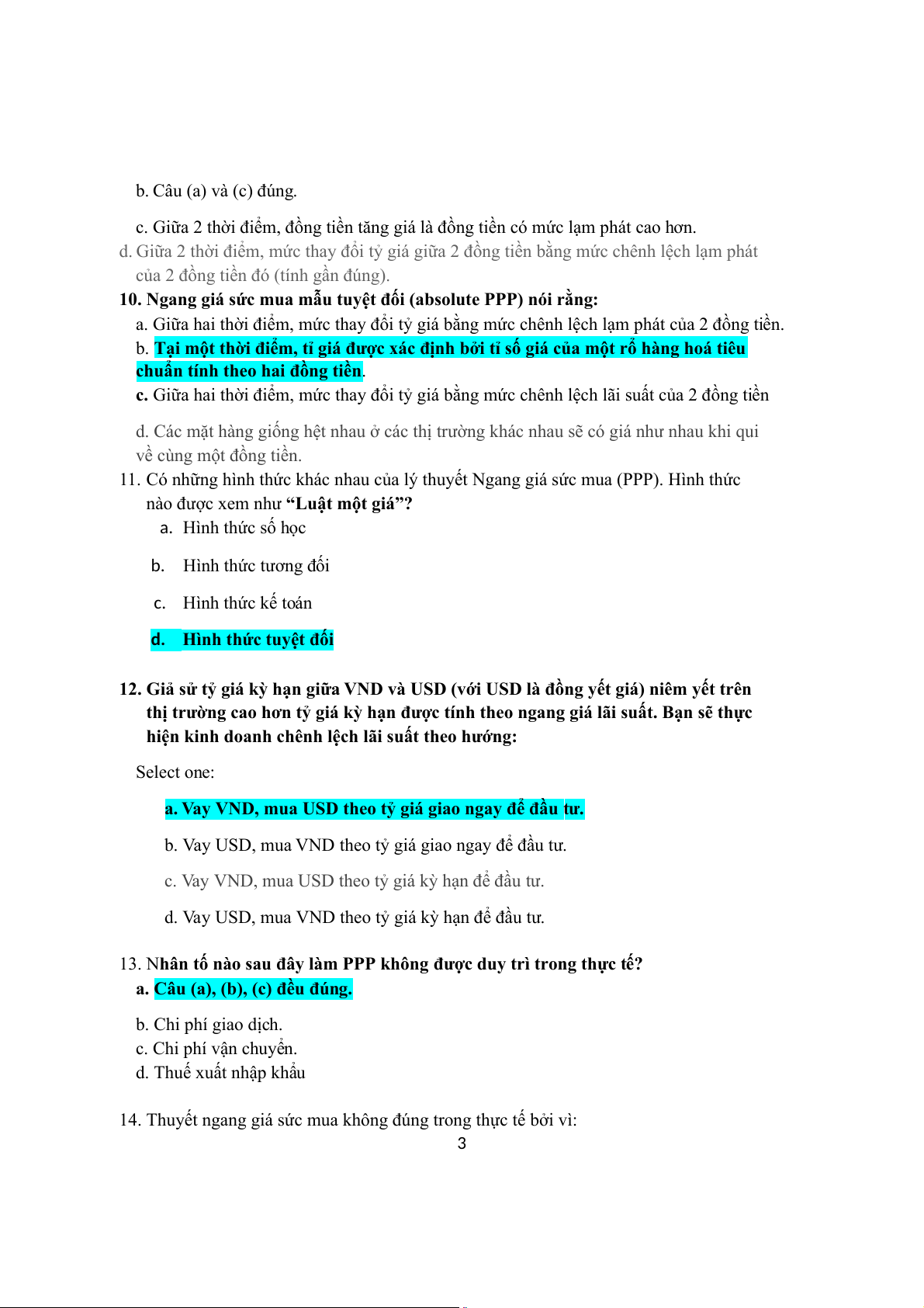 11. Có những hình thức khác nhau của lý thuyết Ngang giá sức mua (PPP). Hình thức