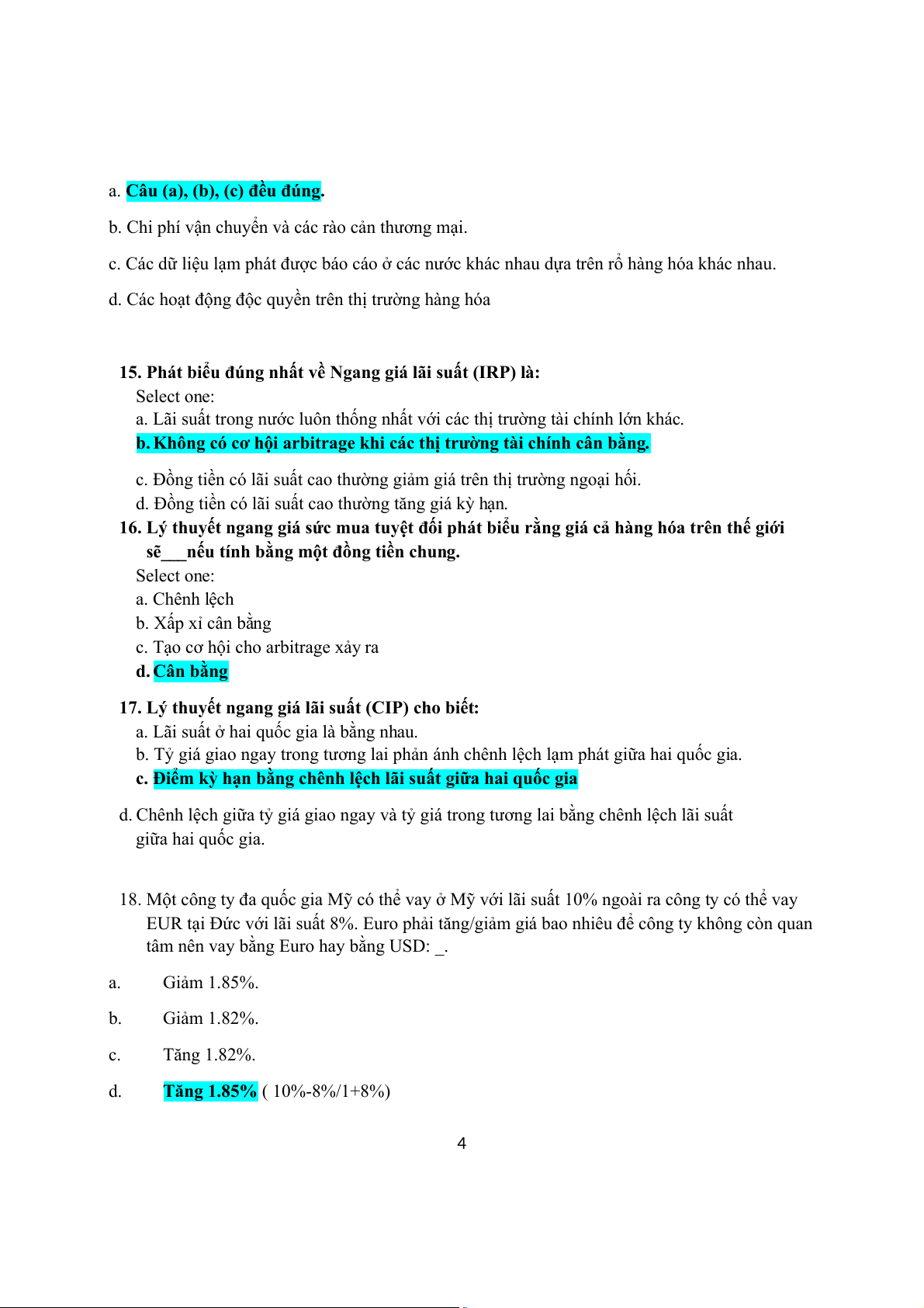 18. Một công ty đa quốc gia Mỹ có thể vay ở Mỹ với lãi suất 10% ngoài ra công ty có thể vay
