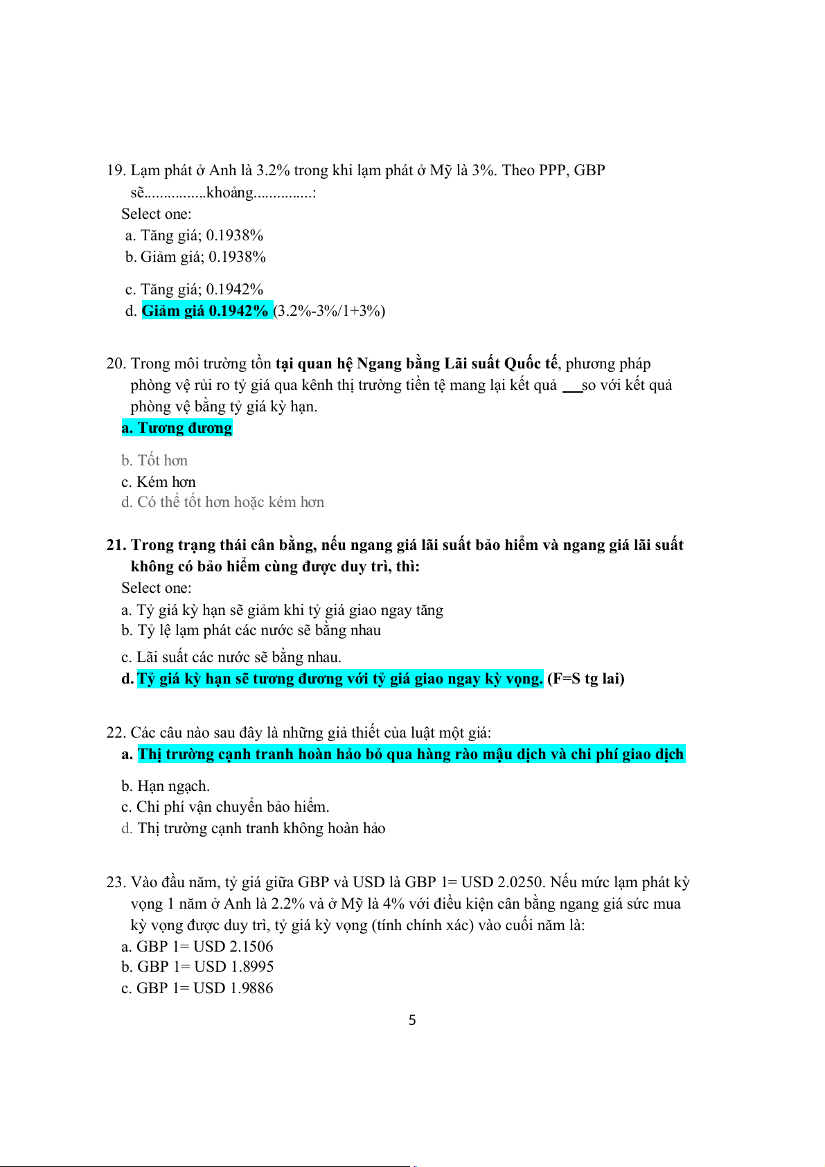 a. Giữa 2 thời điểm, đồng tiền nào có mức lạm phát cao hơn đồng tiền đó sẽ giảm giá. 2 b. Câu (a) và (c) đúng.