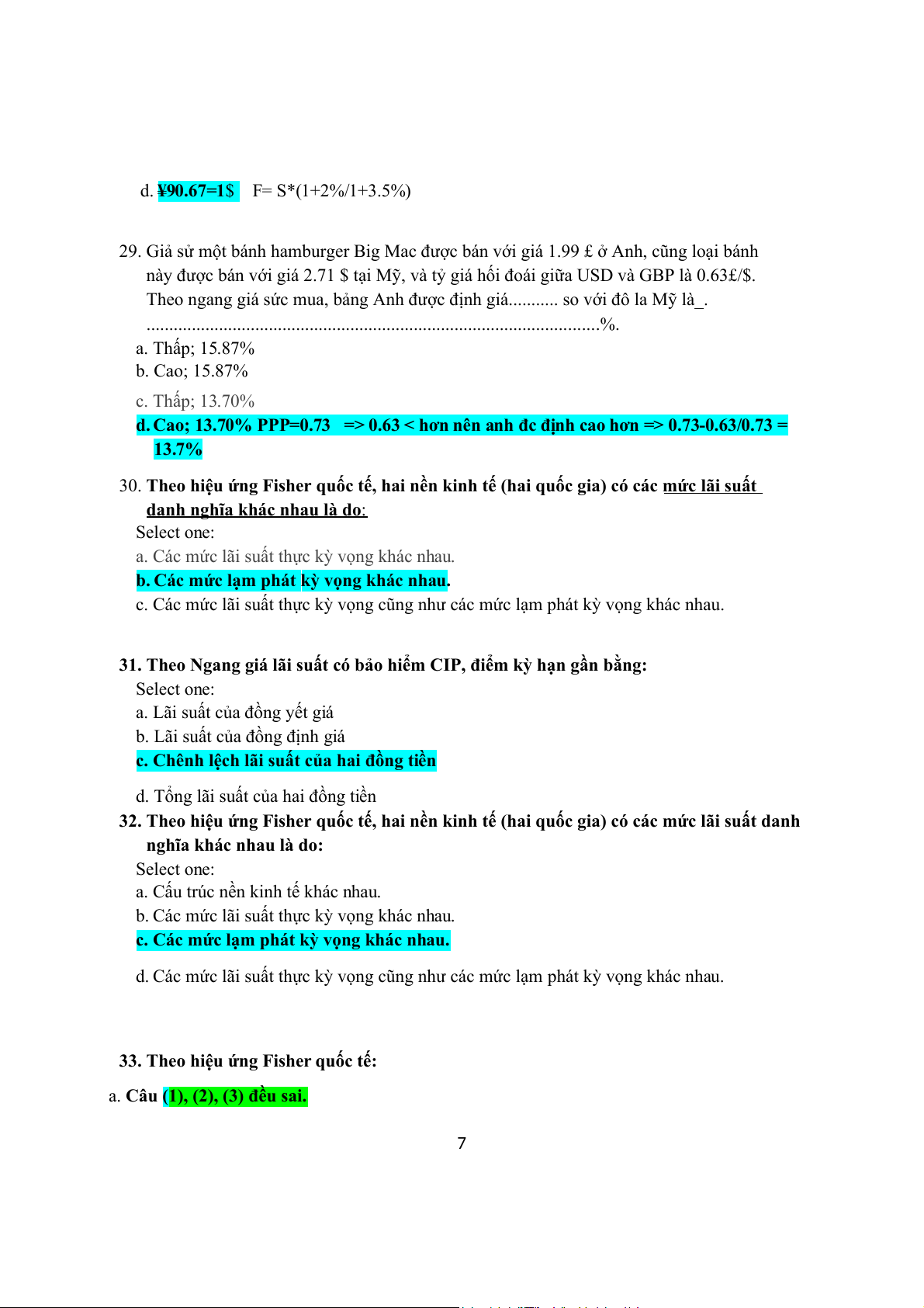 8. Theo lý thuyết ngang giá lãi suất có bảo hiểm CIP, nếu USD có điểm kỳ hạn gia